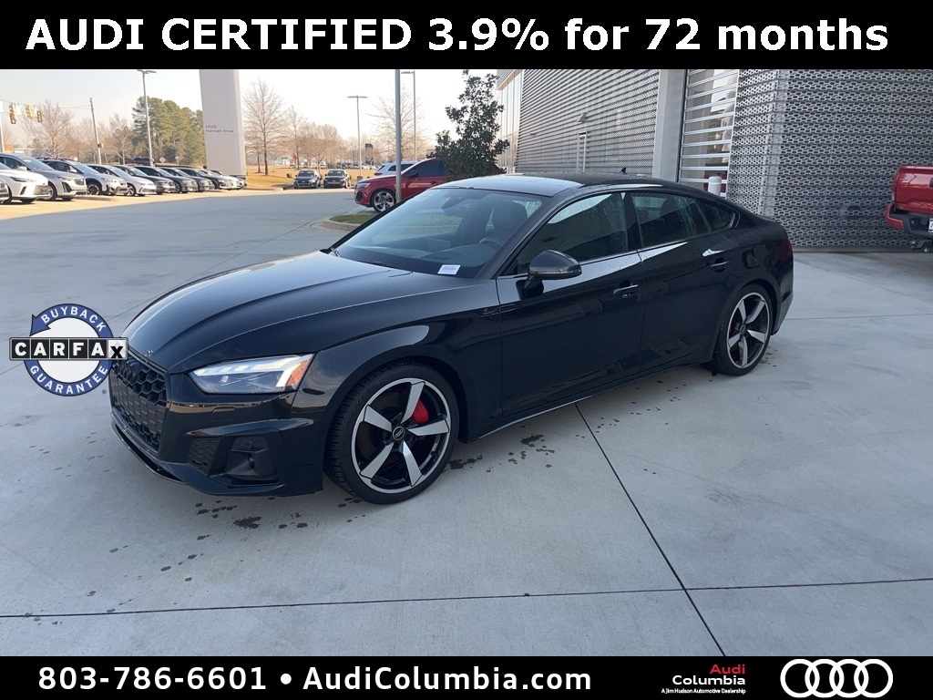 2022 Audi A5 Sportback Prestige Clean CarFax, Well Maintained, 2 Rear USB Charge Ports, 4-Wheel Disc Brakes, ABS brakes, Adaptive Cruise Control w/Traffic Jam Assist, Alloy wheels, Aluminum Ellipse Dark Inlays, Animation for Headlights & Taillights, Anti-whiplash front head restraints, Audi Active Lane Assist, Audi Advanced Key, Audi Phone Box, Audi Virtual Cockpit Plus, Automatic temperature control, Bang & Olufsen Sound System w/3D Sound, Black Exterior Mirrors, Black Optic Plus Package, Convenience Package, Driver Seat Memory, Dual front impact airbags, Dual front side impact airbags, Emergency communication system: Audi connect CARE, Exterior Parking Camera Rear, Front anti-roll bar, Front dual zone A/C, Garage door transmitter: HomeLink, Head-Up Display, Heated Front Bucket Seats, Heated Rear Seats, High-Gloss Black Exterior Trim, Interior Lighting Plus Package, Knee airbag, Leather Seating Surfaces, Low tire pressure warning, Matrix-Design LED Headlights w/Audi Laser Light, Matte Black Front Grille, MMI Navigation Plus, Navigation Package, Navigation System, Occupant sensing airbag, Overhead airbag, Park Assist, Parking System Plus (Front/Rear Acoustic Sensors), Power adjustable front head restraints, Power Folding Exterior Mirrors, Power Liftgate, Power moonroof, Prestige, Rain sensing wipers, Rear anti-roll bar, Red Brake Calipers, Speed-sensing steering, Top View Camera System, Traffic Sign Recognition, Ventilated Front Seats, Wheels: 19" 5-Arm-Cutter Design Bi-Color Finish.