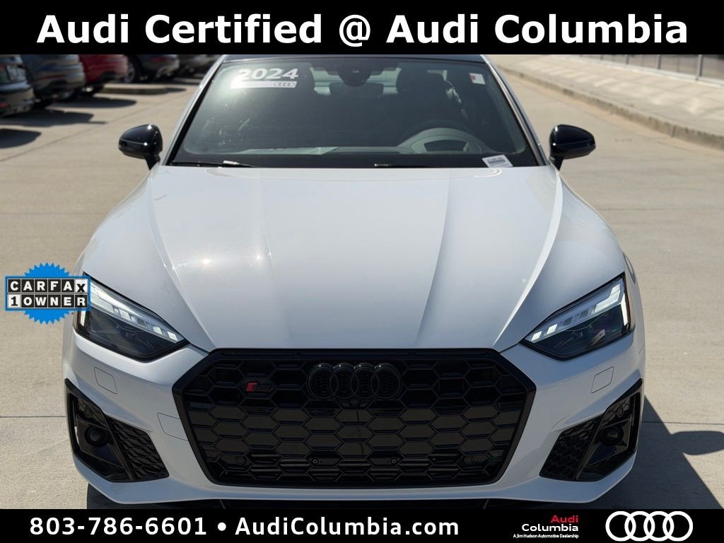2024 Audi S5 3.0T Prestige Clean CarFax, Local Trade, One Owner, Well Maintained, 2D Coupe, 4-Wheel Disc Brakes, ABS brakes, Alloy wheels, Animation for Headlights & Taillights, Audi Laser Light & Headlight Washers, Audi Virtual Cockpit Plus, Auto High-beam Headlights, Automatic temperature control, Bang & Olufsen Sound System w/3D Sound, Convenience Package, Dual front impact airbags, Dual front side impact airbags, Emergency communication system: Audi connect CARE, Exterior Parking Camera Rear, Fine Nappa Leather Seating Surfaces, Front anti-roll bar, Front dual zone A/C, Garage door transmitter: HomeLink, Head-Up Display, Heated Front S Sport Seats, Heated front seats, Knee airbag, LED Interior Lighting Plus Package, Low tire pressure warning, Navigation Package, Navigation System, Occupant sensing airbag, Overhead airbag, Park Assist, Power Folding Exterior Mirrors, Power moonroof, Prestige, Rear anti-roll bar, Speed-sensing steering, Top View Camera System, Wheels: 19" 5-Double-Arm Design Bi-Color Finish, Wireless Phone Charging Pad.