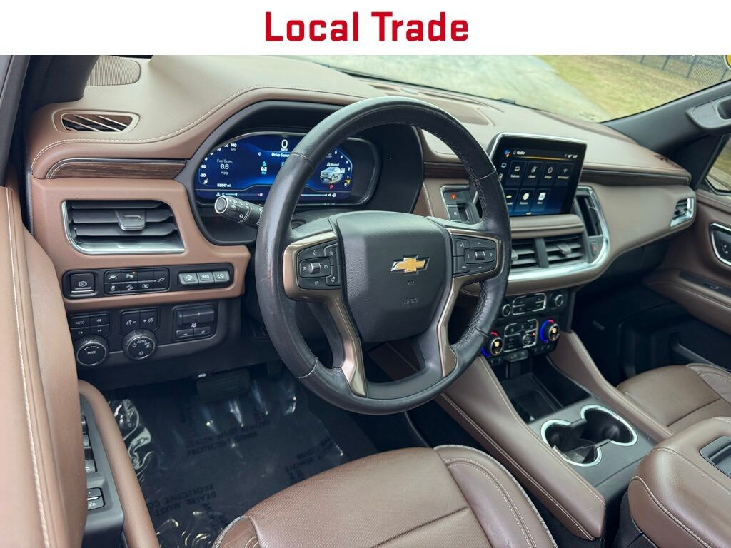 2022 Chevrolet Tahoe High Country Clean CarFax, Local Trade, Well Maintained, Chevrolet Certified Pre-Owned Certified, 4WD, Jet Black/Mocha Leather, 15" Diagonal Multi-Color Head-Up Display, 2-Speed Active Electronic AutoTrac Transfer Case, Advanced Trailering Package, Apple CarPlay/Android Auto, Bose 10-Speaker Centerpoint Surround Audio Sys Ft, Color-Keyed Carpeting Floor Covering, Dual Exhaust System, Dual-Pane Power Panoramic Sunroof, Enhanced Driver Information Center, Extra Capacity Cooling System, Floor Console, Hands-Free Rear Power Programmable Liftgate, HD Surround Vision, Heated 2nd Row Outboard Seats, Heated Steering Wheel, Hitch Guidance w/Hitch View, Infotainment Display, Inside Rearview Auto-Dimming Rear Camera Mirror, Integrated Trailer Brake Controller, Lane Change Alert w/Side Blind Zone Alert, Leather-Wrapped Steering Wheel, Max Trailering Package, Memory Settings, Navigation System, Outside Heated Power-Adjustable Mirrors, Power Liftgate, Power Release 2nd Row Bucket Seats, Power Tilt & Telescopic Steering Column, Preferred Equipment Group 3LZ, Rear Camera Mirror Washer, Rear Cross Traffic Alert, Rear Pedestrian Alert, Remote Start, Safety Alert Seat, SiriusXM Radio w/360L, Smart Trailer Integration Indicator, Trailer Side Blind Zone Alert, Universal Home Remote, Wireless Charging, 10 Speakers, 3.23 Rear Axle Ratio, 3rd row seats: split-bench, 4-Wheel Disc Brakes, ABS brakes, Adaptive Cruise Control, Adaptive suspension, Air Conditioning, Alloy wheels, AM/FM radio: SiriusXM with 360L, Auto High-beam Headlights, Auto-dimming door mirrors, Auto-dimming Rear-View mirror, Auto-leveling suspension, Automatic temperature control, Brake assist, Bumpers: body-color, Compass, Delay-off headlights, Driver door bin, Driver vanity mirror, Dual front impact airbags, Dual front side impact airbags, Electronic Stability Control, Emergency communication system: OnStar and Chevrolet connected services capable, Enhanced Automatic Emergency Braking, Four wheel independent suspension, Front anti-roll bar, Front Bucket Seats, Front Center Armrest, Front dual zone A/C, Front High-Back Reclining Bucket Seats, Front reading lights, Fully automatic headlights, Garage door transmitter, Heads-Up Display, Heated & Ventilated Driver & Front Passenger Seats, Heated door mirrors, Heated Driver & Front Passenger Seats, Heated front seats, Heated rear seats, Heated steering wheel, Hill Descent Control, Illuminated entry, Leather steering wheel, Low tire pressure warning, Magnetic Ride Control Suspension, Memory seat, Not Equipped w/4-Way Driver & Fr Pass Pwr Lumbar, Not Equipped w/Steering Column Lock, Occupant sensing airbag, Outside temperature display, Overhead airbag, Overhead console, Panic alarm, Passenger door bin, Passenger vanity mirror, Perforated Leather Seat Trim, Power door mirrors, Power driver seat, Power passenger seat, Power steering, Power windows, Premium audio system: Chevrolet Infotainment System 3, Radio: Chevrolet Infotainment 3 Premium System, Rain sensing wipers, Rear air conditioning, Rear anti-roll bar, Rear reading lights, Rear window defroster, Rear window wiper, Remote keyless entry, Roof rack: rails only, Security system, Set of 4 Wheel Locks (LPO), Speed control, Speed-sensing steering, Split folding rear seat, Spoiler, Steering wheel memory, Steering wheel mounted audio controls, Tachom