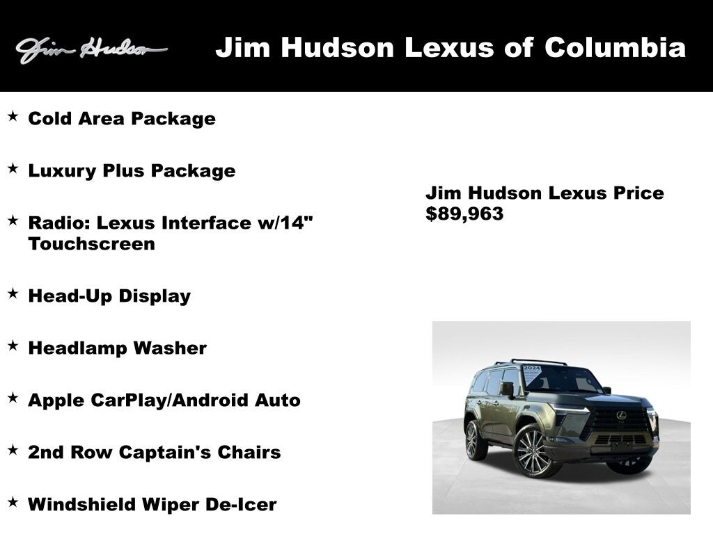 2024 Lexus GX 550 Luxury+ 2nd Row Captain's Chairs, Apple CarPlay/Android Auto, Cold Area Package, Head-Up Display, Headlamp Washer, Luxury Plus Package, Radio: Lexus Interface w/14" Touchscreen, Windshield Wiper De-Icer.
