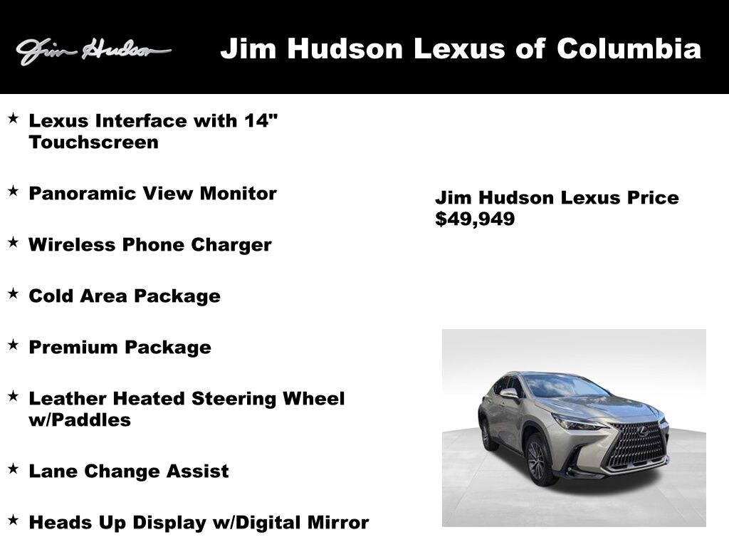 2024 Lexus NX 350 Premium Lexus Interface with 14" Touchscreen, Panoramic View Monitor, Wireless Phone Charger, Cold Area Package, Heads Up Display w/Digital Mirror, Lane Change Assist, Leather Heated Steering Wheel w/Paddles, Premium Package, Wiper & Window Deicer, Wireless Apple CarPlay/Wireless Android Auto.