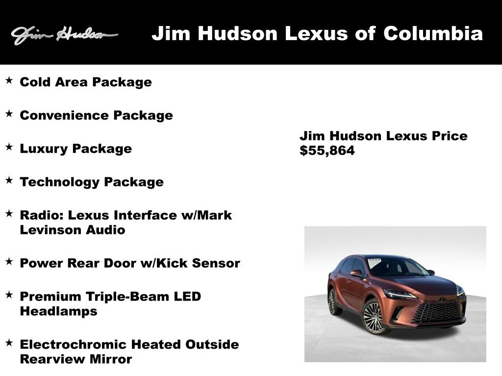 2024 Lexus RX 350 Luxury Macadamia w/Ash Bamboo w/Semi-Aniline/Synthetic Suede Leather Seat Trim, Cold Area Package, Convenience Package, Electrochromic Heated Outside Rearview Mirror, Lane Change Assist w/Lane Keeping Assist System, Luxury Package, Power Rear Door w/Kick Sensor, Premium Triple-Beam LED Headlamps, Radio: Lexus Interface w/Mark Levinson Audio, Technology Package.
