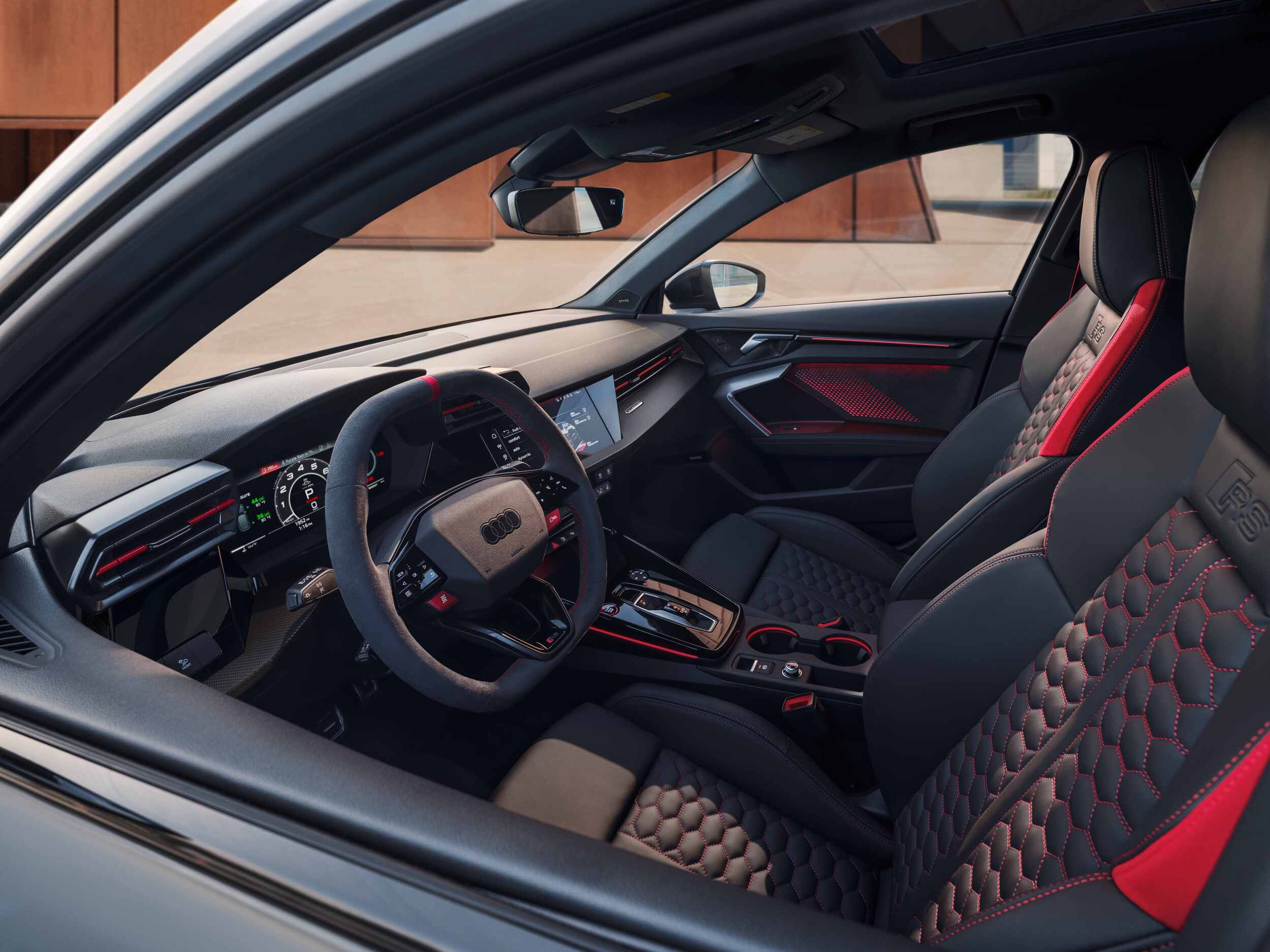 The Audi RS3 cabin showcases a driver-focused cabin loaded with first-class materials and cutting-edge technology. The Virtual Cockpit digital instrument cluster puts essential information directly in your line of sight. At the same time, the intuitive MMI infotainment system keeps you connected on every journey. The refined interior makes daily commutes through Chapin, SC, more enjoyable.
