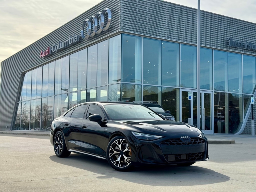 Mythos Black Metallic 2026 Audi A6 Prestige quattro quattro 7-Speed Automatic 3.0L V6 Turbocharged DOHC 24V LEV3-ULEV70 362hp A6 Prestige quattro, 3.0L V6 Turbocharged DOHC 24V LEV3-ULEV70 362hp, Mythos Black Metallic, 4-Zone Automatic Climate Control, 7 Front Digital DRL Signatures, ABS brakes, Acoustic Front and Rear Side Window, Adaptive Cruise Assist, Alloy wheels, Animation For Headlights and Taillights, Anthracite Audi Rings, Bang & Olufsen Front Headrest Speakers, Bang & Olufsen Sound System with 3D Sound, Black Exterior Trim, Black Wheel Center Caps, Comfort Air Suspension, Compass, Dark Chrome Exhaust Tips, Digital OLED Taillights with 7 Light Signatures, Dynamic Interaction Light, Electronic Stability Control, Front dual zone A/C, Head-Up Display, Headlight Washers, Heated door mirrors, Heated front seats, Heated Rear Seats, Heated Steering Wheel with Hands-on Detection, Illuminated entry, Low tire pressure warning, Matrix-Design LED Headlights with Digital DRL, MMI Passenger Display with 10.9" Screen, Navigation System, Park Assist Plus, Power Door Closers, Power Rear Window Sunshade, Prestige Package, Remote keyless entry, S Line Black Optic Package, S Line Exterior, Top View Camera System, Traction control, USB Power Delivery (2x60W Front and 2x100W Rear), Wheels: 20" 5-Arm-Peak Design Bicolor Finish.
