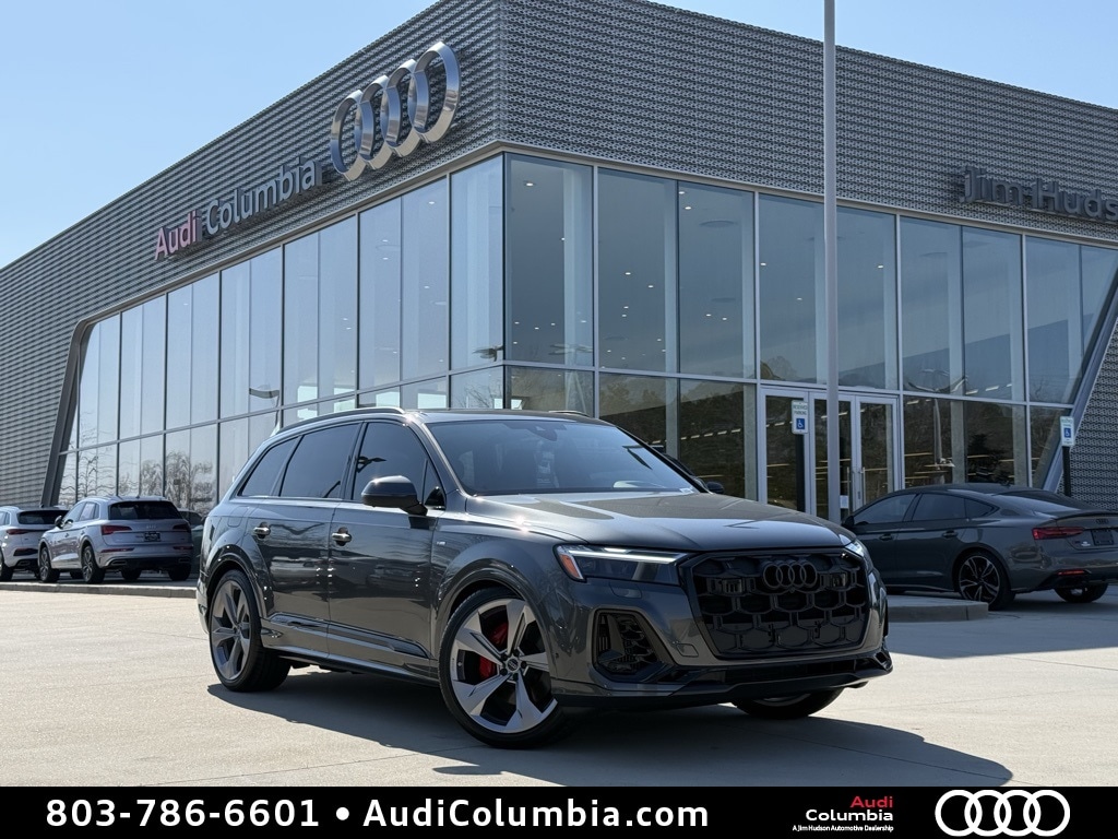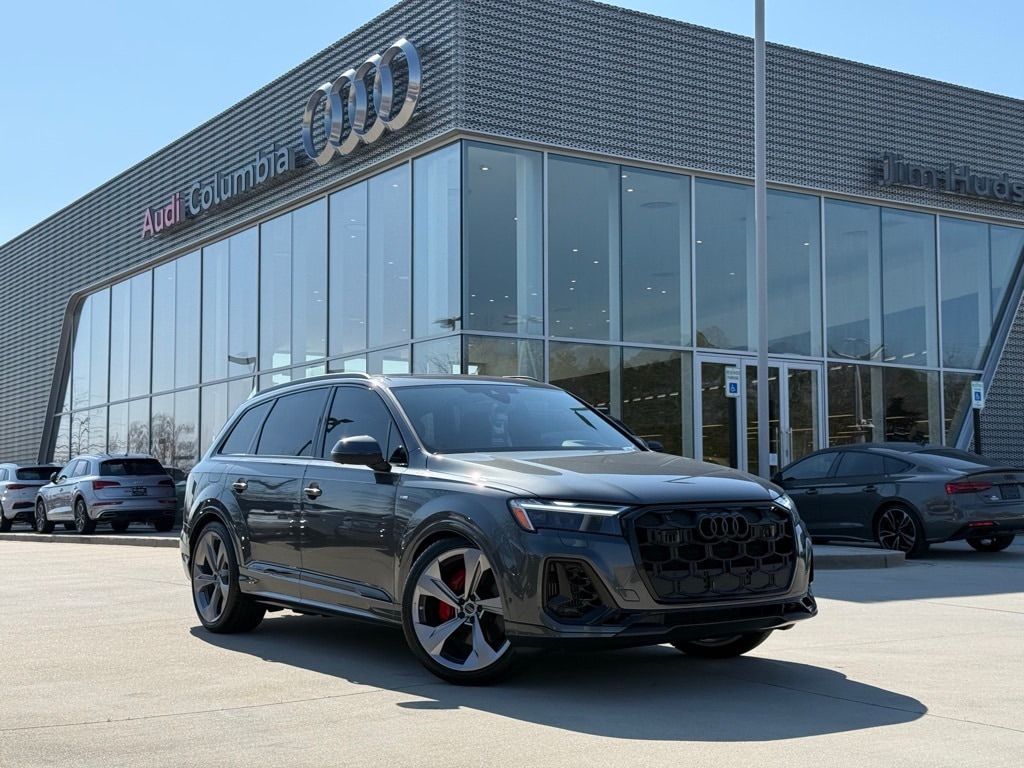 Daytona Gray Pearl Effect 2026 Audi Q7 55 Prestige quattro quattro 8-Speed Automatic with Tiptronic 3.0L TFSI 22" Wheel Package, 7-Pin Adapter, 7700 lbs Towing Capacity, ABS brakes, Active Cruise Control, Adaptive Air Suspension, All-Wheel Steering, Anthracite Audi Rings, Audi Beam Rings, Audi Guard Protection Kit, Bang & Olufsen Premium Sound System with 3D Sound, Black Optic Exterior Trim and Roof Rails, Carbon Twill Matte Inlays, Compass, Control Buttons in Gloss Black with Haptic Feedback, Crimson Red Interior Stitching and Seat Belts, Dark Chrome Exhaust Tips, Dual-Pane Acoustic Glass For Side Windows, Electronic Stability Control, Extended Leather Package, Four-Zone Automatic Climate Control, Front dual zone A/C, Front Passenger Memory Seat Function, Head-Up Display, Heated door mirrors, Heated Front Bucket Seats, Heated front seats, Heated Rear Seats, Heated Steering Wheel, Illuminated Door Sills, Illuminated entry, Individual Contour Front Seats with Power Lumbar For Passenger, Intersection Assist, LED Interior Lighting Plus Package, Low tire pressure warning, Massage Function For Front Seats, Model Badge Delete, Navigation System, Power Liftgate, Power Soft-Closing Doors, Prestige Package, Rear Door/Side Windows and Tailgate Sunshades, Red Brake Calipers, Remote keyless entry, Remote Park Assist Plus, S Line Exterior, Sport Adaptive Air Suspension, Sport Plus Package, Sport Seats Plus, Stainless Steel Pedal Caps, Top View Camera System with Virtual 360 View, Traction control, Trailer Hitch, Valcona Leather Seat Trim, Valcona/Cricket Leather Seat Trim, Ventilation For Front Seats, Wheels: 22" 5-Arm-Edge Design with Platinum Finish.