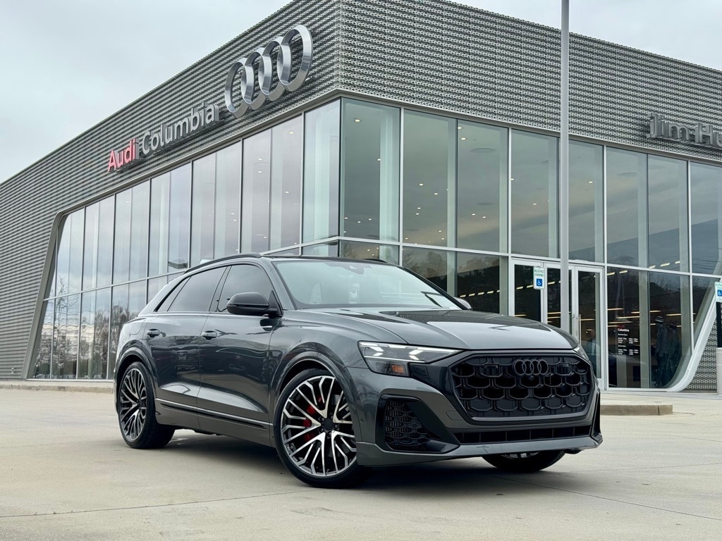 Daytona Gray Pearl Effect 2026 Audi SQ8 4.0T Prestige quattro quattro 8-Speed Automatic with Tiptronic 4.0L V8 Turbocharged DOHC 32V LEV3-ULEV125 500hp 23" Wheel Package, 7-Pin Adapter, ABS brakes, Active Cruise Control, Active Roll Stabilization, Animation For Headlights and Taillights, Anthracite Gray Audi Rings, Audi Guard All-Weather Mats, Audi Guard Cargo Mat, Black Dinamica Headliner, Black Exterior Mirror Housings, Black Exterior Trim, Black Optic Package, Black Roof Rails, Compass, Dark Chrome Exhaust Tips, Dual-Pane Acoustic Glass For Side Windows, Electronic Stability Control, Executive Package, Extended Leather Package, Front dual zone A/C, Front Seats with Ventilation, HD Matrix-Design LED Headlights with Audi Laser Light, Head-Up Display, Headlight Washers, Heated door mirrors, Heated front seats, Heated Rear Seats, Illuminated entry, Low tire pressure warning, Luxury Package, Massage Function For Front Seats, Memory Seat Function For Front Passenger, Navigation System, OLED Taillights, Power Liftgate, Power Rear Side Windows with Manual Tailgate Sunshades, Power Soft-Closing Doors, Prestige Package, Rear dual zone A/C, Red Brake Calipers, Remote keyless entry, Remote Park Assist Plus, S Sport Package, Sport Rear Differential, Sports Exhaust Resonator Kit, Traction control, Trailer Hitch, Wheels: 23" Multispoke-S Design with Bicolor Finish.