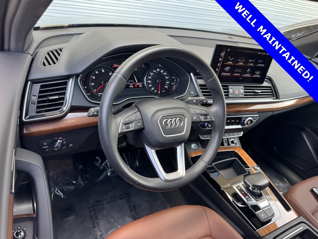 2022 Audi Q5 45 S line Premium Clean CarFax, Local Trade, One Owner, Well Maintained, 4-Wheel Disc Brakes, ABS brakes, Adaptive Cruise Control w/Traffic Jam Assist, Alloy wheels, Audi Active Lane Assist, Audi Connect PRIME & PLUS, Audi Phone Box, Audi Virtual Cockpit Plus, Auto High-beam Headlights, Auto-dimming Rear-View mirror, Automatic temperature control, Bang & Olufsen Sound System w/3D Sound, Convenience Package, Dual front impact airbags, Dual front side impact airbags, Emergency communication system: Audi connect CARE, Exterior Parking Camera Rear, Front anti-roll bar, Front dual zone A/C, Garage door transmitter: HomeLink, Hands-On Detection Steering Wheel, Heated 8-Way Power Front Bucket Seats, Heated front seats, Leather Seating Surfaces, Low tire pressure warning, MMI Navigation Plus, Navigation Package, Navigation System, Occupant sensing airbag, Overhead airbag, Panoramic Sunroof, Power Adjustable Steering Column, Power Liftgate, Premium Plus Package, Rear anti-roll bar, Speed-sensing steering, Steering wheel mounted audio controls, Top View Camera System, Wheels: 20" 5-Arm Cutter Design, Bi-Color Finish.