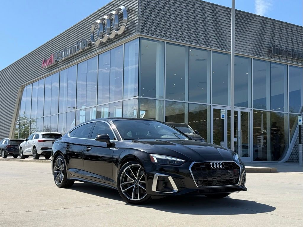 2023 Audi A5 Sportback 45 S line Premium Plus Clean CarFax, Local Trade, New Tires, One Owner, Well Maintained, 2 Rear USB Charge Ports, 4-Wheel Disc Brakes, ABS brakes, Alarm System w/Motion Sensor, Alloy wheels, Anti-whiplash front head restraints, Audi Active Lane Assist, Audi Advanced Key, Audi Connect PLUS, Audi Phone Box, Audi Side Assist w/Pre Sense Rear, Audi Virtual Cockpit Plus, Auto High-beam Headlights, Automatic temperature control, Bang & Olufsen Sound System w/3D Sound, Brushed Aluminum Inlays, Convenience Package, Driver Seat Memory, Dual front impact airbags, Dual front side impact airbags, Emergency communication system: Audi connect CARE, Exterior Parking Camera Rear, Front anti-roll bar, Front dual zone A/C, Garage door transmitter: HomeLink, Hands-On Detection Steering Wheel, Heated Front Sport Seats, Knee airbag, Leather/Dinamica Seating Surfaces, Low tire pressure warning, MMI Navigation Plus, Navigation Package, Navigation System, Occupant sensing airbag, Overhead airbag, Parking System Plus (Front/Rear Acoustic Sensors), Power adjustable front head restraints, Power Folding Exterior Mirrors, Power Liftgate, Power moonroof, Premium Plus, Rear anti-roll bar, S-Line Interior Package, Speed-sensing steering, Stainless Steel Pedal Caps, Top View Camera System, Traffic Jam Assist, Wheels: 19" 5-Spoke-Cavo Design Bi-Color Finish.