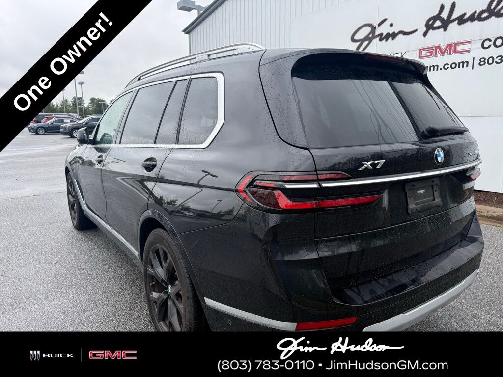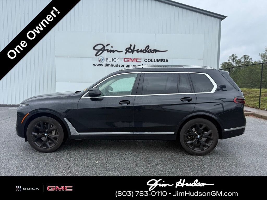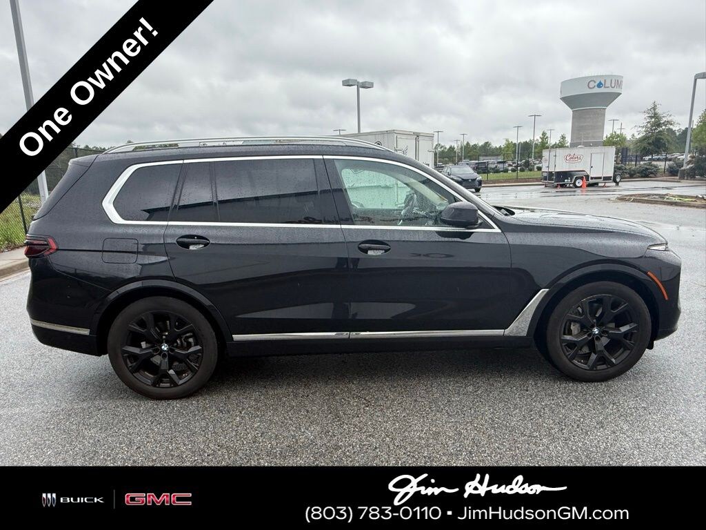 2024 BMW X7 xDrive40i 10 Speakers, 3.64 Axle Ratio, 3rd row seats: split-bench, 4-Wheel Disc Brakes, ABS brakes, Adaptive suspension, Air Conditioning, Alloy wheels, AM/FM radio: SiriusXM with 360L, AM/FM Stereo, Apple CarPlay & Android Auto Compatibility, Apple CarPlay Compatibility, Auto High-beam Headlights, Auto tilt-away steering wheel, Auto-dimming door mirrors, Auto-dimming Rear-View mirror, Auto-leveling suspension, Automatic temperature control, BMW Assist eCall, BMW TeleServices, Brake assist, Bumpers: body-color, Compass, Connected Package Pro, ConnectedDrive Services, Delay-off headlights, Drive Recorder, Driver door bin, Driver vanity mirror, Dual front impact airbags, Dual front side impact airbags, Electronic Stability Control, Emergency communication system: BMW Assist eCall, Exterior Parking Camera Rear, Four wheel independent suspension, Front anti-roll bar, Front Bucket Seats, Front Center Armrest, Front dual zone A/C, Front reading lights, Fully automatic headlights, Garage door transmitter, Genuine wood console insert, Genuine wood dashboard insert, Genuine wood door panel insert, Head restraints memory, Heads-Up Display, Heated door mirrors, Heated front seats, Heated Multi-Contour Seats, Heated steering wheel, Hi-Fi Sound System, Illuminated entry, Knee airbag, Leather steering wheel, Live Cockpit Pro, Low tire pressure warning, Memory seat, Navigation system: BMW Maps Navigation, Occupant sensing airbag, Outside temperature display, Overhead airbag, Panic alarm, Parking Assistance Package, Parking Assistant Professional, Passenger door bin, Passenger vanity mirror, Personal eSIM 5G, Power adjustable front head restraints, Power door mirrors, Power driver seat, Power Front Seats, Power moonroof: Panorama, Power passenger seat, Power steering, Power windows, Radio data system, Rain sensing wipers, Rear air conditioning, Rear anti-roll bar, Rear dual zone A/C, Rear reading lights, Rear seat center armrest, Rear window defroster, Rear window wiper, Reclining 3rd row seat, Remote keyless entry, Security system, Sensafin Upholstery, SiriusXM w/360L & 1 Year Platinum Plan Subscription, Speed control, Speed-sensing steering, Speed-Sensitive Wipers, Split folding rear seat, Spoiler, Sport steering wheel, Steering wheel memory, Steering wheel mounted audio controls, Surround View w/3D View, Tachometer, Telescoping steering wheel, Tilt steering wheel, Traction control, Trip computer, Turn signal indicator mirrors, Variably intermittent wipers, Wheels: 21" x 9.5" Y-Spoke Bi-Color, Wheels: 21" x 9.5" Y-Spoke Black, Wireless Charging Device.
