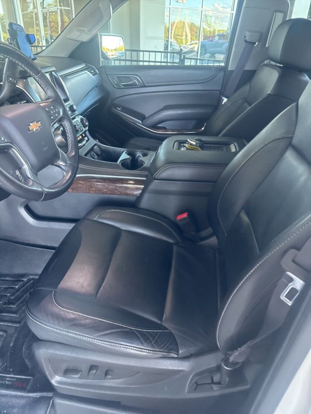 4WD, Jet Black Leather, 18" x 8.5" Aluminum Wheels, 1st & 2nd Row Color-Keyed Carpeted Floor Mats, 2nd Row 60/40 Split-Folding Manual Bench, 2nd Row Pwr Release 60/40 Split Folding Bench Seat, 3.08 Rear Axle Ratio, 3rd Row 60/40 Power Fold Split-Bench, 3rd Row Manual 60/40 Split-Folding Fold Flat Bench, 3rd row seats: split-bench, 4-Wheel Antilock Disc Brakes, 4-Wheel Disc Brakes, 5 12-Volt Auxiliary Power Outlets, 6-Way Power Front Passenger Seat Adjuster, 9 Speakers, ABS brakes, Adjustable pedals, Air Conditioning, Alloy wheels, AM/FM radio: SiriusXM, Apple CarPlay, Auto High-beam Headlights, Auto-Dimming Inside Rear-View Mirror, Auto-dimming Rear-View mirror, Automatic temperature control, Black Assist Steps, Bose Premium 9-Speaker System, Brake assist, Bumpers: body-color, CD player, Color-Keyed Carpeting Floor Covering, Compass, Delay-off headlights, Driver door bin, Driver Inboard & Front Passenger Airbags, Driver vanity mirror, Dual front impact airbags, Dual front side impact airbags, Electronic Cruise Control w/Set & Resume Speed, Electronic Stability Control, Emergency communication system: OnStar, Enhanced Driver Instrument Information Display, Extended-Range Remote Keyless Entry, Exterior Parking Camera Rear, Floor Console, Fog Lamps, Forward Collision Alert Sensor Indicator, Front & Rear Parking Assist, Front anti-roll bar, Front Bucket Seats, Front Center Armrest, Front dual zone A/C, Front Heated Reclining Bucket Seats, Front reading lights, Front wheel independent suspension, Fully automatic headlights, Garage door transmitter, Hands Free Power Liftgate, Heated 2nd Row Seats, Heated door mirrors, Heated front seats, Heated Leather Wrapped Steering Wheel, Illuminated entry, IntelliBeam Headlamps, Lane Departure Warning System, Lane Keep Assist, Leather-Appointed Seat Trim, Leather-Wrapped Steering Wheel, Low tire pressure warning, Luxury Package, Memory seat, Memory Settings, Occupant sensing airbag, OnStar Basic Plan For 5 Years, Outside temperature display, Overhead airbag, Overhead console, Panic alarm, Passenger door bin, Passenger vanity mirror, Passive Entry System, Pedal memory, Power door mirrors, Power driver seat, Power Liftgate, Power passenger seat, Power steering, Power Sunroof, Power Tilt & Telescopic Steering Column w/Memory, Power windows, Power-Adjustable Accelerator & Brake Pedals, Power-Folding Heated Outside Mirrors, Preferred Equipment Group 1LT, Premium audio system: Chevrolet MyLink, Premium Smooth Ride Suspension Package, Push Button Keyless Start, Radio: Chevrolet MyLink AM/FM Stereo, Radio: Chevrolet MyLink w/Navigation/AM/FM Stereo, Rain sensing wipers, Rear air conditioning, Rear anti-roll bar, Rear Cross-Traffic Alert, Rear Park Assist w/Audible Warning, Rear reading lights, Rear Seat Blu-Ray/DVD Entertainment System, Rear seat center armrest, Rear window defroster, Rear window wiper, Remote keyless entry, Roof rack: rails only, Roof-Mounted Luggage Rack Side Rails, Safety Alert Driver Seat, Security system, Side Blind Zone Alert w/Lane Change Alert, Single-Slot CD/MP3 Player, SiriusXM Satellite Radio, Speed control, Speed-sensing steering, Split folding rear seat, Spoiler, Steering wheel mounted audio controls, Sun, Entertainment & Destinations Package, Tachometer, Telescoping steering wheel, Tilt steering wheel, Traction control, Trip computer, Unauthorized Entry Electrical Theft Deterrent Sys., Universal Home Remote, Variably intermittent wipers, Voltmeter, Wireless Charging, 4WD, Jet Black Leather.