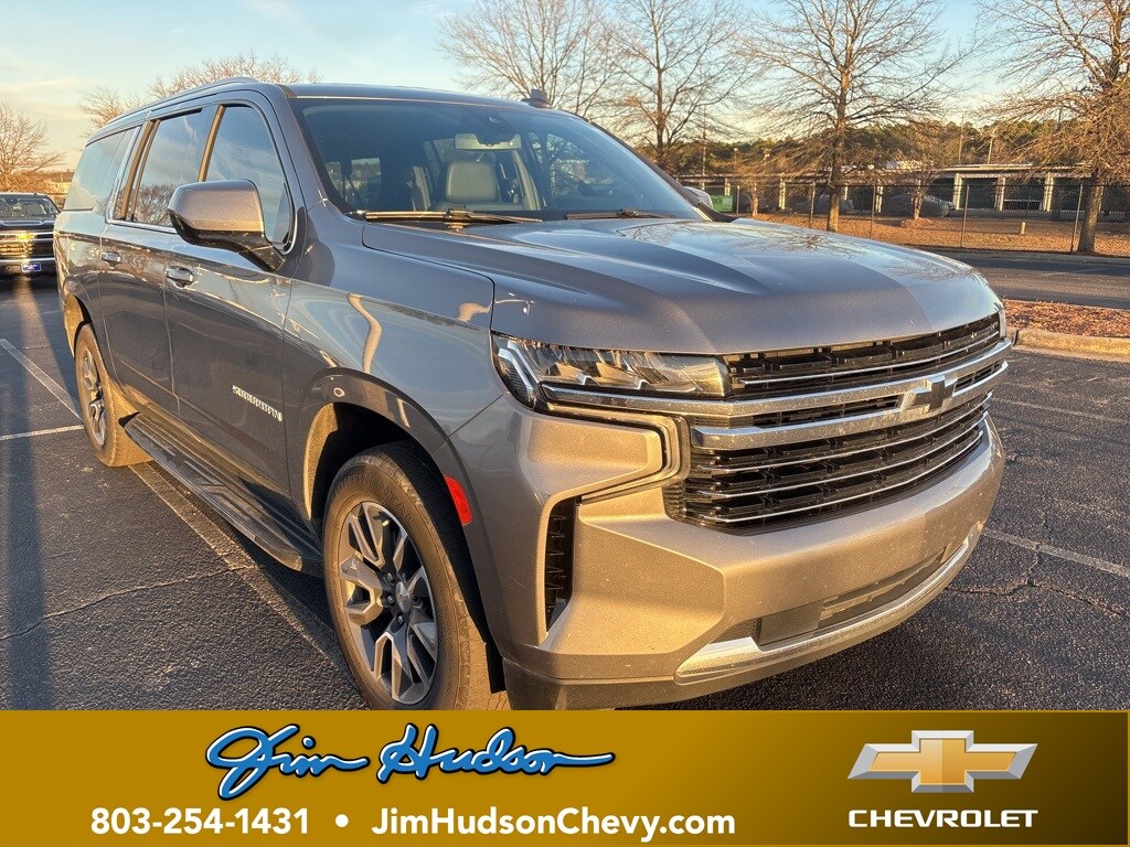 Jim Hudson Chevrolet is proud to present you with another True Market Priced Pre-Owned Vehicle. This 2021 Chevrolet Suburban LT is loaded with the following Factory Options:Preferred Equipment Group 1LT (10-Way Power Driver & Passenger Seat Adjusters, 1st & 2nd Row Color-Keyed Carpeted Floor Mats, 2 USB Data Ports, Auto-Dimming Inside Rear-View Mirror, Bose 9-Speaker Stereo Audio System Feature, Bright Front & Rear Door Sill Plates, Color-Keyed Carpeting Floor Covering, Driver & Front Outboard Passenger Airbags, Floor Console w/Storage Area, Hands-Free Rear Power Programmable Liftgate, HD Radio, Heated Driver & Front Passenger Seats, Infotainment Display, Leather-Wrapped Steering Wheel, LED Daytime Running Lamps, Memory Settings For Driver, Remote Start, SiriusXM Radio w/360L, and Universal Home Remote), Apple CarPlay/Android Auto, Automatic temperature control, Dual-Pane Power Panoramic Sunroof, Power Liftgate, 2nd Row Manual Bucket Seats, 3.23 Rear Axle Ratio, 3rd row seats: split-bench, 4-Wheel Disc Brakes, 9 Speakers, ABS brakes, Air Conditioning, Alloy wheels, AM/FM radio: SiriusXM with 360L, Auto High-beam Headlights, Auto-dimming Rear-View mirror, Brake assist, Bumpers: body-color, Compass, Delay-off headlights, Driver door bin, Driver vanity mirror, Dual front impact airbags, Dual front side impact airbags, Electronic Stability Control, Emergency communication system: OnStar and Chevrolet connected services capable, Four wheel independent suspension, Front & Rear Black Bowtie Emblems (LPO), Front anti-roll bar, Front Bucket Seats, Front Center Armrest, Front dual zone A/C, Front reading lights, Fully automatic headlights, Garage door transmitter, Heated door mirrors, Heated front seats, Illuminated entry, Leather Seating Surfaces, Leather steering wheel, Low tire pressure warning, Memory seat, Occupant sensing airbag, Outside temperature display, Overhead airbag, Overhead console, Panic alarm, Passenger door bin, Passenger vanity mirror, Power door mirrors, Power driver seat, Power passenger seat, Power steering, Power windows, Premium audio system: Chevrolet Infotainment 3 Plus, Premium Smooth Ride Suspension, Radio: Chevrolet Infotainment 3 Plus System, Rain sensing wipers, Rear air conditioning, Rear anti-roll bar, Rear reading lights, Rear seat center armrest, Rear window defroster, Rear window wiper, Remote keyless entry, Roof rack: rails only, Security system, Speed control, Speed-sensing steering, Split folding rear seat, Spoiler, Steering wheel mounted audio controls, Tachometer, Telescoping steering wheel, Tilt steering wheel, Traction control, Trip computer, Variably intermittent wipers, Vertical Cargo Net (LPO), Voltmeter, Wheel Locks (Set of 4) (LPO), Wheels: 18" x 8.5" Bright Silver Painted Aluminum, and Wheels: 20" x 9" Painted Aluminum Visit www.FuelEconomy.gov to get current fuel economy ratings for this vehicle.