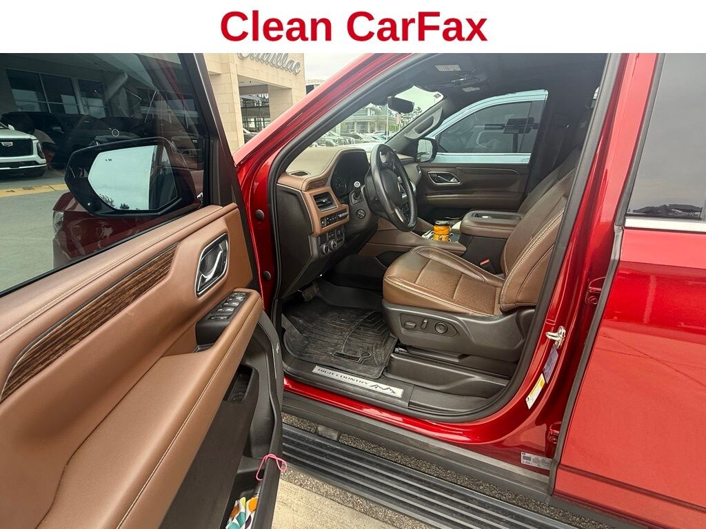 2021 Chevrolet Tahoe High Country Clean CarFax, Local Trade, Well Maintained, Jet Black/Mocha Leather, 15" Diagonal Multi-Color Head-Up Display, 1st & 2nd Row Color-Keyed Carpeted Floor Mats, 2 USB Data Ports, 3rd Row 60/40 Power-Folding Split-Bench Seat, Adaptive Cruise Control, Apple CarPlay/Android Auto, Automatic Heated Steering Wheel, Bright Front & Rear Door Sill Plates, Chrome Door Handles w/Body-Color Strip, Color-Keyed Carpeting Floor Covering, Driver & Front Outboard Passenger Airbags, Dual Exhaust System, Dual-Pane Power Panoramic Sunroof, Enhanced Driver Information Center, Floor Console w/Storage Area, Front & Rear Park Assist, Hands-Free Rear Power Programmable Liftgate, HD Radio, HD Surround Vision, Heads-Up Display, Heated 2nd Row Outboard Seats, Infotainment Display, Inside Rearview Auto-Dimming Rear Camera Mirror, Lane Change Alert w/Side Blind Zone Alert, Lane Keep Assist w/Lane Departure Warning, Leather-Wrapped Steering Wheel, LED Daytime Running Lamps, Memory Settings, Outside Heated Power-Adjustable Mirrors, Power Release 2nd Row Bucket Seats, Power Tilt & Telescopic Steering Column, Power-Retractable Assist Steps, Preferred Equipment Group 3LZ, Premium Package, Rear Camera Mirror Washer, Rear Cross Traffic Alert, Rear Pedestrian Alert, Remote Start, Safety Alert Seat, SiriusXM NavTraffic, SiriusXM Radio w/360L, Universal Home Remote, 10 Speakers, 12-Way Power Driver & Passenger Seat Adjusters, 3.23 Rear Axle Ratio, 3rd row seats: split-bench, 4-Wheel Disc Brakes, ABS brakes, Adaptive suspension, Advanced Trailering Package, Advanced Trailering System, Air Conditioning, Alloy wheels, AM/FM radio: SiriusXM with 360L, Auto High-beam Headlights, Auto-dimming door mirrors, Auto-dimming Rear-View mirror, Auto-leveling suspension, Automatic temperature control, Bose 10-Speaker Centerpoint Surround Audio Sys Ft, Brake assist, Bumpers: body-color, Compass, Delay-off headlights, Driver door bin, Driver vanity mirror, Dual front impact airbags, Dual front side impact airbags, Electronic Stability Control, Emergency communication system: OnStar and Chevrolet connected services capable, Enhanced Automatic Emergency Braking, Extra Capacity Cooling System, Four wheel independent suspension, Front anti-roll bar, Front Bucket Seats, Front Center Armrest, Front dual zone A/C, Front High-Back Reclining Bucket Seats, Front reading lights, Fully automatic headlights, Garage door transmitter, Heated & Ventilated Driver & Front Passenger Seats, Heated door mirrors, Heated Driver & Front Passenger Seats, Heated front seats, Heated rear seats, Heated steering wheel, Hitch Guidance w/Hitch View, Illuminated entry, Integrated Trailer Brake Controller, Leather steering wheel, Low tire pressure warning, Magnetic Ride Control Suspension, Max Trailering Package, Memory seat, Navigation System, Occupant sensing airbag, Outside temperature display, Overhead airbag, Overhead console, Panic alarm, Passenger door bin, Passenger vanity mirror, Perforated Leather Seat Trim, Power door mirrors, Power driver seat, Power Liftgate, Power passenger seat, Power steering, Power windows, Premium audio system: Chevrolet Infotainment 3, Radio: Chevrolet Infotainment 3 Premium System, Rain sensing wipers, Rear air conditioning, Rear anti-roll bar, Rear reading lights, Rear window defroster, Rear window wiper, Remote keyless entry, Roof rack: rails only, Security system, Set of 4 Wheel Locks (LPO), Speed control, Speed-sensing steering, Split folding rear seat, Spoiler, Steering wheel memory, Steering wheel mounted audio controls, Tachometer, Telescoping steering wheel, Tilt steering wheel, Traction control, Trailer Side Blind Zone Alert, Trip computer, Turn signal indicator mirrors, Variably intermittent wipers, Ventilated front seats, Voltmeter, Wheels: 22" x 9" Sterling Silver Premium Painted, Jet Black/Mocha Leather, 15" Diagonal Multi-Color Head-Up Display, 1st & 2nd Row Color-Keyed Carpeted Floor Mats, 2 USB D