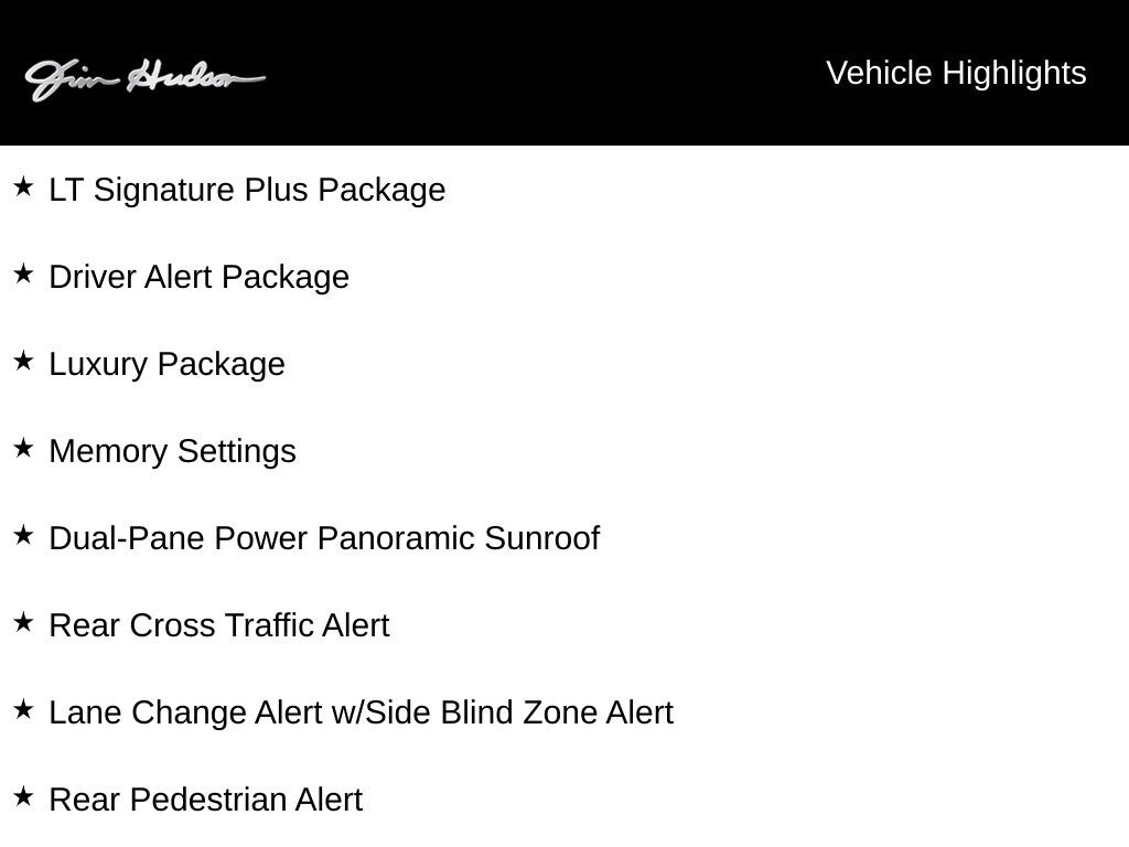 2022 Chevrolet Tahoe LT Jet Black w/Leather-Appointed Seat Trim, 3rd Row 60/40 Power-Folding Split-Bench Seat, Driver Alert Package, Dual-Pane Power Panoramic Sunroof, HD Surround Vision, Heated 2nd Row Outboard Seats, Lane Change Alert w/Side Blind Zone Alert, LT Signature Plus Package, Luxury Package, Memory Settings, Rear Cross Traffic Alert, Rear Pedestrian Alert.