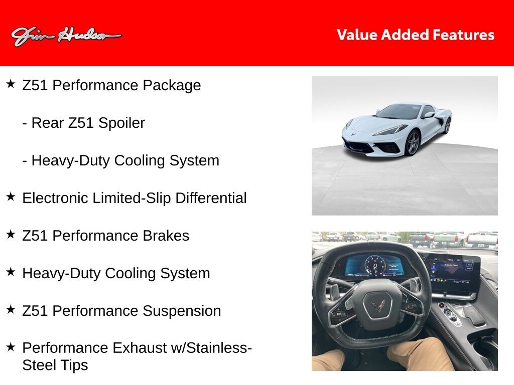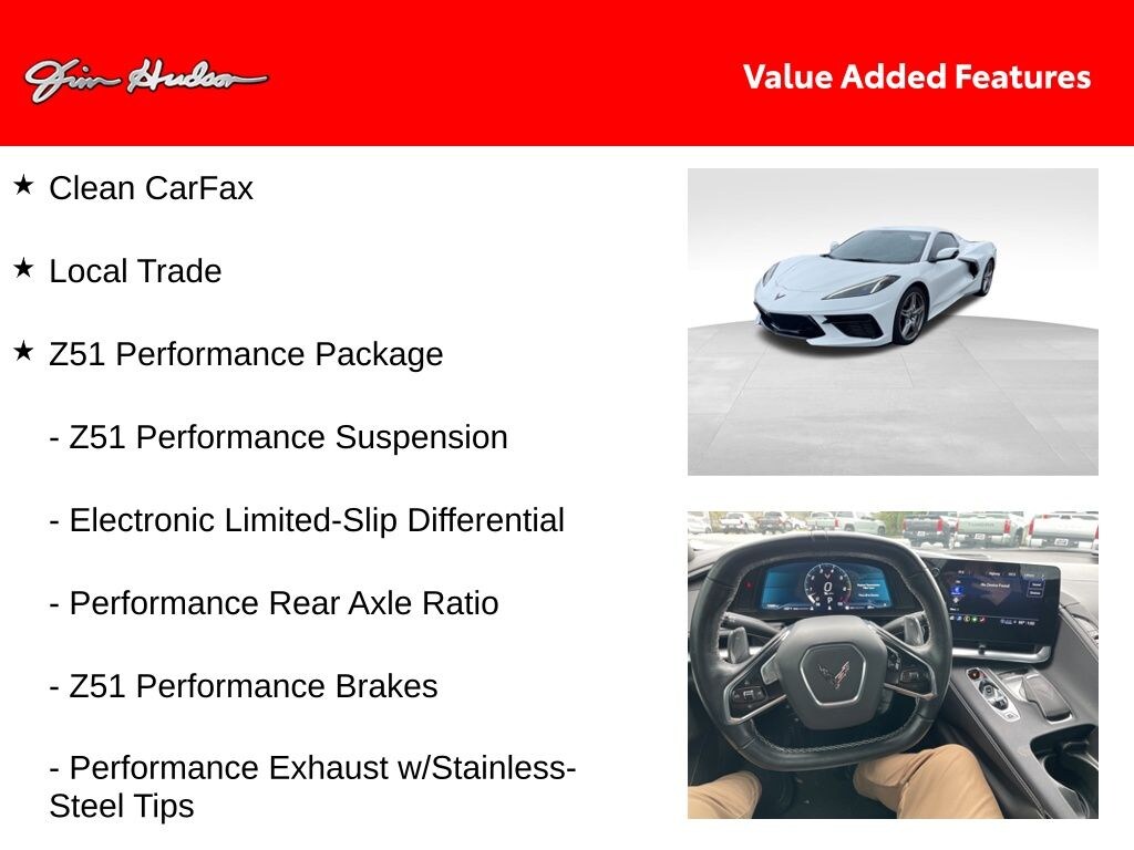 Clean CarFax, Local Trade, Electronic Limited-Slip Differential, Heavy-Duty Cooling System, Performance Exhaust w/Stainless-Steel Tips, Performance Rear Axle Ratio, Rear Z51 Spoiler, Z51 Performance Brakes, Z51 Performance Package, Z51 Performance Suspension, 10 Speakers, 4-Wheel Disc Brakes, 8-Way Power Driver Seat Adjuster, 8-Way Power Passenger Seat Adjuster, ABS brakes, Aero Delete, Air Conditioning, Alloy wheels, AM/FM radio: SiriusXM, Apple CarPlay/Android Auto, Auto-dimming Rear-View mirror, Automatic temperature control, Battery Protection Package, Bose Premium 10-Speaker Audio System Feature, Brake assist, Bumpers: body-color, Compass, Convertible HardTop, Convertible roof lining, Delay-off headlights, Driver door bin, Driver vanity mirror, Dual front impact airbags, Dual front side impact airbags, Electronic Stability Control, Emergency communication system: OnStar and Chevrolet connected services capable, Four wheel independent suspension, Front anti-roll bar, Front Bucket Seats, Front Center Armrest, Front dual zone A/C, Front License Plate Bracket, Front reading lights, Fully automatic headlights, Glass rear window, GT1 Bucket Seats, HD Radio, Heated door mirrors, Illuminated entry, Integrated roll-over protection, Leather Shift Knob, Leather steering wheel, Low tire pressure warning, Mulan Lthr Seating Surfaces w/Perforated Inserts, Occupant sensing airbag, Outside temperature display, Overhead console, Panic alarm, Passenger door bin, Passenger vanity mirror, Power convertible roof, Power door mirrors, Power driver seat, Power passenger seat, Power steering, Power windows, Preferred Equipment Group 1LT, Premium audio system: Chevrolet Infotainment 3 Plus, Radio data system, Radio: Chevrolet Infotainment 3 Plus System, Rear anti-roll bar, Rear window defroster, Remote keyless entry, SiriusXM Radio, Speed control, Speed-sensing steering, Sport steering wheel, Steering wheel mounted audio controls, Tachometer, Telescoping steering wheel, Tilt steering wheel, Traction control, Trip computer, Turn signal indicator mirrors, Variably intermittent wipers, Voltmeter, Wheels: 19" x 8.5" Fr/20" x 11" Rr Bright Silver, Electronic Limited-Slip Differential, Heavy-Duty Cooling System, Performance Exhaust w/Stainless-Steel Tips, Performance Rear Axle Ratio, Rear Z51 Spoiler, Z51 Performance Brakes, Z51 Performance Package, Z51 Performance Suspension.