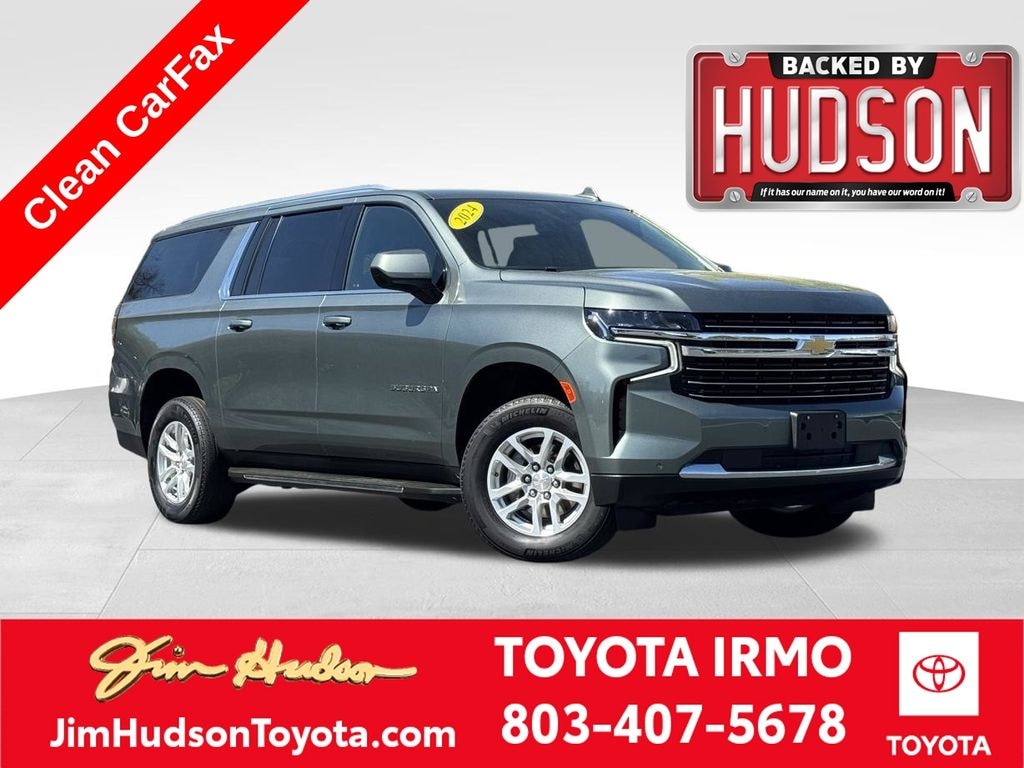 Clean CarFax, One Owner, 10-Way Power Driver & Passenger Seat Adjusters, 1st & 2nd Row Color-Keyed Carpeted Floor Mats, 3.23 Rear Axle Ratio, 3rd row seats: split-bench, 4-Wheel Disc Brakes, 9 Speakers, ABS brakes, Air Conditioning, Alloy wheels, AM/FM radio: SiriusXM with 360L, Apple CarPlay/Android Auto, Auto High-beam Headlights, Auto-Dimming Inside Rear-View Mirror, Auto-dimming Rear-View mirror, Automatic temperature control, Bose 9-Speaker Stereo Audio System Feature, Brake assist, Bright Front & Rear Door Sill Plates, Bumpers: body-color, Color-Keyed Carpeting Floor Covering, Compass, Delay-off headlights, Deleted 3 Years of Remote Access, Driver & Front Outboard Passenger Airbags, Driver door bin, Driver vanity mirror, Dual front impact airbags, Dual front side impact airbags, Electronic Stability Control, Emergency communication system: OnStar and Chevrolet connected services capable, Enhanced Driver Information Center, Floor Console w/Storage Area, Four wheel independent suspension, Front anti-roll bar, Front Bucket Seats, Front Center Armrest, Front dual zone A/C, Front reading lights, Fully automatic headlights, Garage door transmitter, Hands-Free Rear Power Programmable Liftgate, Heated door mirrors, Heated Driver & Front Passenger Seats, Heated front seats, Illuminated entry, Infotainment Display, Leather-Appointed Seating, LED Daytime Running Lamps, License Plate Front Mounting Package, Low tire pressure warning, Memory seat, Memory Settings For Driver, Navigation System, Occupant sensing airbag, Outside temperature display, Overhead airbag, Overhead console, Panic alarm, Passenger door bin, Passenger vanity mirror, Power door mirrors, Power driver seat, Power Liftgate, Power passenger seat, Power steering, Power windows, Preferred Equipment Group 1LT, Premium audio system: Chevrolet Infotainment 3 Premium, Premium Smooth Ride Suspension, Radio: Chevrolet Infotainment 3 Premium System, Rain sensing wipers, Rear air conditioning, Rear anti-roll bar, Rear reading lights, Rear seat center armrest, Rear window defroster, Rear window wiper, Remote keyless entry, Remote Start, Roof rack: xxxxxx, Security system, SiriusXM w/360L, Speed control, Speed-sensing steering, Split folding rear seat, Spoiler, Steering wheel mounted audio controls, Tachometer, Telescoping steering wheel, Tilt steering wheel, Traction control, Trip computer, Universal Home Remote, Variably intermittent wipers, Voltmeter, Wheels: 18" x 8.5" Bright Silver Painted Aluminum, Wireless Charging, Wrapped Steering Wheel.