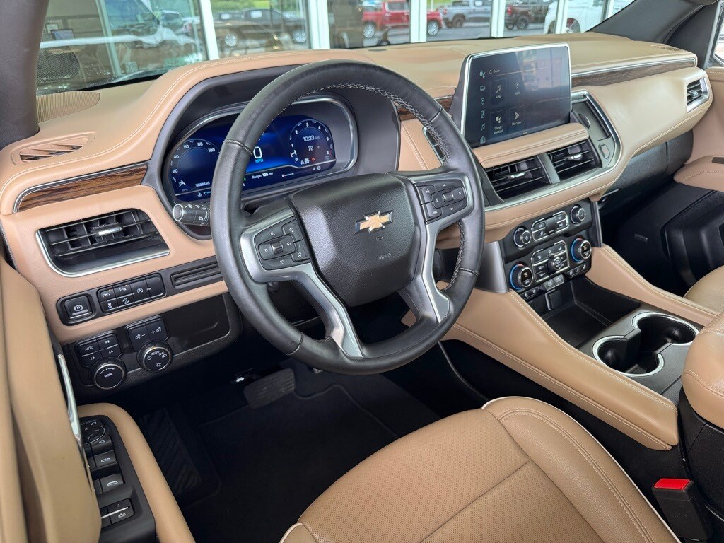 Jim Hudson Chevrolet is proud to present you with another True Market Priced Pre-Owned Vehicle. This 2024 Chevrolet Tahoe Premier is loaded with the following Factory Options:Preferred Equipment Group 1LZ (1st & 2nd Row Color-Keyed Carpeted Floor Mats, 2-Speed Active Electronic AutoTrac Transfer Case, 3rd Row 60/40 Power-Folding Split-Bench Seat, Auto-Dimming Inside Rear-View Mirror, Bose 10-Speaker Centerpoint Surround Audio Sys Ft, Bright Front & Rear Door Sill Plates, Chrome Door Handles w/Body-Color Strip, Chrome Mirror Caps, Color-Keyed Carpeting Floor Covering, Driver & Front Outboard Passenger Airbags, Dual Exhaust System, Enhanced Driver Information Center, Floor Console, Hands-Free Rear Power Programmable Liftgate, Heated 2nd Row Outboard Seats, Heated Steering Wheel, Hill Descent Control, Lane Change Alert w/Side Blind Zone Alert, LED Daytime Running Lamps, Memory Settings, Outside Heated Power-Adjustable Mirrors, Power Release 2nd Row Bucket Seats, Power Tilt & Telescopic Steering Column, Rear Cross Traffic Alert, Remote Start, Safety Alert Seat, SiriusXM w/360L, Universal Home Remote, Wireless Charging, and Wrapped Steering Wheel), 4WD, Jet Black/Maple Sugar Leather, 10 Speakers, 12-Way Power Driver & Passenger Seat Adjusters, 20" x 9" Polished Aluminum Wheels, 3.23 Rear Axle Ratio, 3rd row seats: split-bench, 4-Wheel Disc Brakes, ABS brakes, Adaptive suspension, Air Conditioning, Alloy wheels, AM/FM radio: SiriusXM with 360L, Apple CarPlay/Android Auto, Auto High-beam Headlights, Auto-dimming door mirrors, Auto-dimming Rear-View mirror, Auto-leveling suspension, Automatic temperature control, Brake assist, Bumpers: body-color, Compass, Delay-off headlights, Deleted 3 Years of OnStar Remote Access, Driver & Front Passenger Heated & Ventilated Seats, Driver door bin, Driver vanity mirror, Dual front impact airbags, Dual front side impact airbags, Electronic Stability Control, Emergency communication system: OnStar and Chevrolet connected services capable, Four wheel independent suspension, Front anti-roll bar, Front Bucket Seats, Front Center Armrest, Front dual zone A/C, Front High-Back Reclining Bucket Seats, Front reading lights, Fully automatic headlights, Garage door transmitter, Heated door mirrors, Heated Driver & Front Passenger Seats, Heated front seats, Heated rear seats, Heated steering wheel, Illuminated entry, Infotainment Display, Low tire pressure warning, Magnetic Ride Control Suspension, Memory seat, Navigation System, Occupant sensing airbag, Outside temperature display, Overhead airbag, Overhead console, Panic alarm, Passenger door bin, Passenger vanity mirror, Perforated Leather Seat Trim, Power door mirrors, Power driver seat, Power Liftgate, Power passenger seat, Power steering, Power windows, Premium audio system: Chevrolet Infotainment 3 Premium, Radio: Chevrolet Infotainment 3 Premium System, Rain sensing wipers, Rear air conditioning, Rear anti-roll bar, Rear reading lights, Rear window defroster, Rear window wiper, Remote keyless entry, Roof rack: xxxxxx, Security system, Speed control, Speed-sensing steering, Split folding rear seat, Spoiler, Steering wheel memory, Steering wheel mounted audio controls, Tachometer, Telescoping steering wheel, Tilt steering wheel, Traction control, Trip computer, Turn signal indicator mirrors, Variably intermittent wipers, Ventilated front seats, and Voltmeter Visit www.FuelEconomy.gov to get current fuel economy ratings for this vehicle.