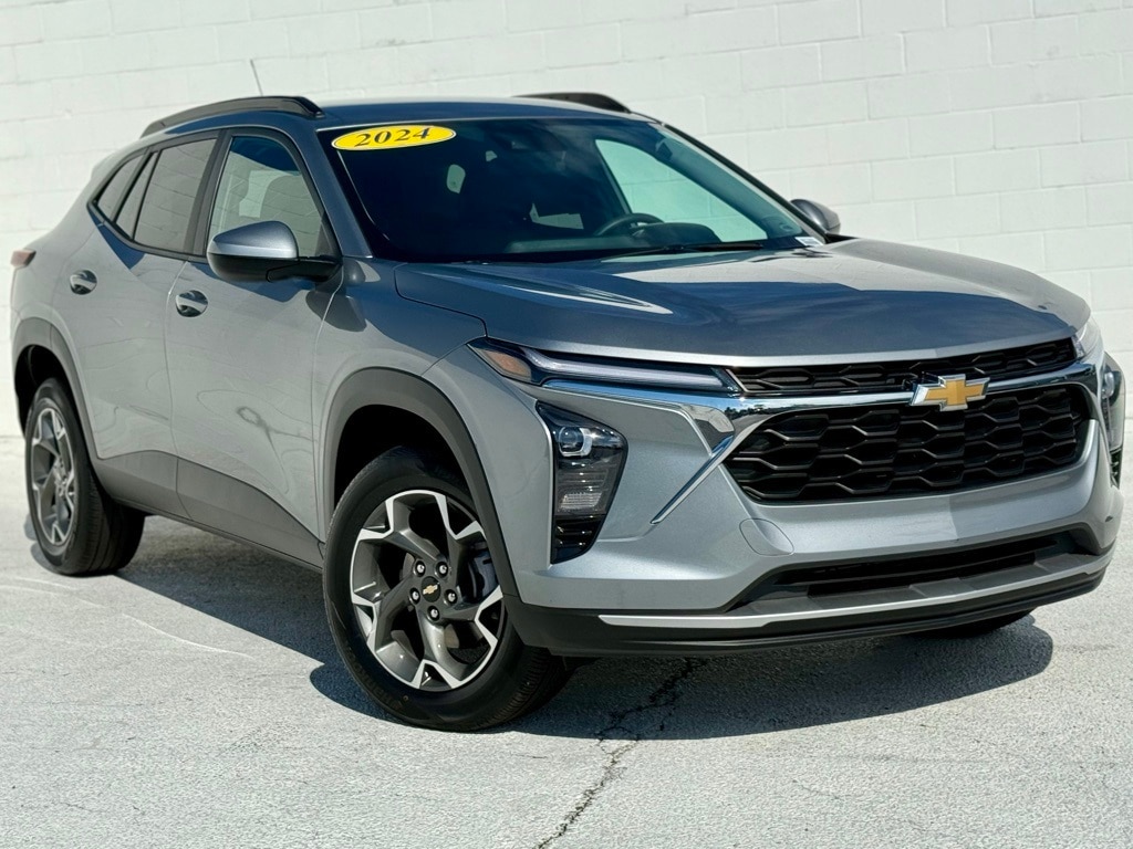 Jim Hudson Chevrolet is proud to present you with another True Market Priced Pre-Owned Vehicle. This 2024 Chevrolet Trax LT is loaded with the following Factory Options:Preferred Equipment Group 1LT, 2-Way Adjustable Front Head Restraints, 3.50 Final Drive Axle Ratio, 4-Way Manual Front Passenger Seat Adjuster, 4-Wheel Disc Brakes, 6 Speakers, 6-Speaker Audio System Feature, 6-Way Manual Driver Seat Adjuster, ABS brakes, Air Conditioning, Alloy wheels, AM/FM radio: SiriusXM, Auto High-beam Headlights, Automatic temperature control, Brake assist, Bumpers: body-color, Cloth/Evotex Seat Trim, Compass, Delay-off headlights, Driver door bin, Driver vanity mirror, Dual front impact airbags, Dual front side impact airbags, Electronic Stability Control, Emergency communication system: OnStar and Chevrolet connected services capable, Exterior Parking Camera Rear, Front anti-roll bar, Front Bucket Seats, Front Center Armrest, Front reading lights, Front wheel independent suspension, Fully automatic headlights, Illuminated entry, Low tire pressure warning, Occupant sensing airbag, Outside temperature display, Overhead airbag, Overhead console, Panic alarm, Passenger door bin, Passenger vanity mirror, Power door mirrors, Power steering, Power windows, Premium audio system: Chevrolet Infotainment 3, Radio data system, Radio: Audio System w/AM/FM, Rear window defroster, Rear window wiper, Remote keyless entry, Security system, SiriusXM, Speed control, Split folding rear seat, Spoiler, Steering wheel mounted audio controls, Tachometer, Telescoping steering wheel, Tilt steering wheel, Traction control, Trip computer, Variably intermittent wipers, and Wheels: 17" Gray-Painted Machined Aluminum Visit www.FuelEconomy.gov to get current fuel economy ratings for this vehicle.