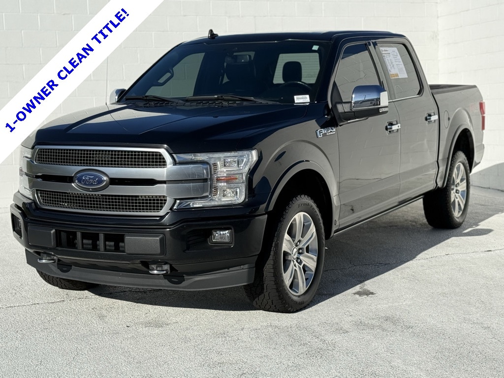 Jim Hudson Chevrolet is proud to present you with another True Market Priced Pre-Owned Vehicle. This 2020 Ford F-150 Platinum is loaded with the following Factory Options:Equipment Group 701A Luxury (Tailgate Step w/Tailgate Lift Assist), FX4 Off-Road Package (Tray Style Floor Liner), Technology Package, Trailer Tow Package (Class IV Trailer Hitch Receiver, Engine Oil Cooler, Pro Trailer Backup Assist, and Upgraded Front Stabilizer Bar), 4WD, 10 Speakers, 20" Polished Aluminum Wheels, 3.31 Axle Ratio, 4-Wheel Disc Brakes, ABS brakes, Adaptive Cruise Control, Adjustable pedals, Air Conditioning, Alloy wheels, AM/FM radio: SiriusXM, Auto High-beam Headlights, Auto tilt-away steering wheel, Auto-dimming door mirrors, Auto-dimming Rear-View mirror, Automatic temperature control, Black Unique Multi-Contour Leather Bucket Seats, Brake assist, Bumpers: body-color, Compass, Delay-off headlights, Driver door bin, Driver vanity mirror, Dual front impact airbags, Dual front side impact airbags, Electronic Locking w/3.31 Axle Ratio, Electronic Locking w/3.55 Axle Ratio, Electronic Stability Control, Emergency communication system: SYNC 3 911 Assist, Extended Range 36 Gallon Fuel Tank, Exterior Parking Camera Rear, Front anti-roll bar, Front Bucket Seats, Front Center Armrest, Front dual zone A/C, Front fog lights, Front License Plate Bracket, Front reading lights, Front wheel independent suspension, Fully automatic headlights, Garage door transmitter, Genuine wood door panel insert, Heated door mirrors, Heated front seats, Heated rear seats, Heated steering wheel, Illuminated entry, Integrated Trailer Brake Controller, Low tire pressure warning, Memory seat, Navigation System, Occupant sensing airbag, Outside temperature display, Overhead airbag, Overhead console, Panic alarm, Passenger door bin, Passenger vanity mirror, Pedal memory, Power door mirrors, Power driver seat, Power passenger seat, Power steering, Power windows, Radio data system, Radio: B&O Sound System by Bang & Olufsen, Rain sensing wipers, Rear Parking Sensors, Rear reading lights, Rear seat center armrest, Rear step bumper, Rear window defroster, Remote keyless entry, Security system, SiriusXM Radio, Speed control, Speed-sensing steering, Split folding rear seat, Steering wheel memory, Steering wheel mounted audio controls, SYNC 3, Tachometer, Telescoping steering wheel, Tilt steering wheel, Tough Bed Spray-In Bedliner, Traction control, Trip computer, Turn signal indicator mirrors, Twin Panel Moonroof, Variably intermittent wipers, Ventilated front seats, Voice-Activated Touchscreen Navigation, Voltmeter, and Wheel Well Liner Visit www.FuelEconomy.gov to get current fuel economy ratings for this vehicle.