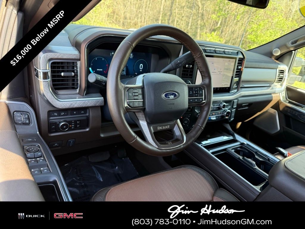 2024 Ford F-350SD King Ranch Clean CarFax, Local Trade, One Owner, Well Maintained, 4WD, 4-Wheel Disc Brakes, ABS brakes, Adjustable pedals, Air Conditioning, Alloy wheels, AM/FM radio: SiriusXM with 360L, Auto High-beam Headlights, Auto tilt-away steering wheel, Auto-dimming Rear-View mirror, Automatic temperature control, Brake assist, Compass, Delay-off headlights, Driver door bin, Driver vanity mirror, Dual front impact airbags, Dual front side impact airbags, Electronic Stability Control, Emergency communication system: SYNC 4 911 Assist, Engine Block Heater, Exterior Parking Camera Rear, Flow-Through Console, Front anti-roll bar, Front Bucket Seats, Front Center Armrest, Front dual zone A/C, Front fog lights, Front License Plate Bracket, Front reading lights, Fully automatic headlights, FX4 Off-Road Package, Garage door transmitter, Heated door mirrors, Heated front seats, Heated rear seats, Heated steering wheel, Hill Descent Control, Illuminated entry, Leather steering wheel, Low tire pressure warning, Memory seat, Navigation system: Connected Navigation (includes complimentary 1-year trial), Off-Road Specifically Tuned Shock Absorbers, Outside temperature display, Overhead airbag, Overhead console, Panic alarm, Passenger door bin, Passenger vanity mirror, Pedal memory, Power door mirrors, Power driver seat, Power passenger seat, Power steering, Power windows, Radio: B&O Unleashed Sound System by Bang & Olufsen, Rain sensing wipers, Rear reading lights, Rear seat center armrest, Rear step bumper, Rear window defroster, Remote keyless entry, Security system, SiriusXM Radio w/360L, Speed control, Split folding rear seat, Steering wheel memory, Steering wheel mounted audio controls, SYNC 4 w/Enhanced Voice Recognition, Tachometer, Telescoping steering wheel, Tilt steering wheel, Traction control, Trip computer, Turn signal indicator mirrors, Twin Panel Power Moonroof, Unique FX4 Off-Road Box Decal, Variably intermittent wipers, Ventilated front seats, 4WD.