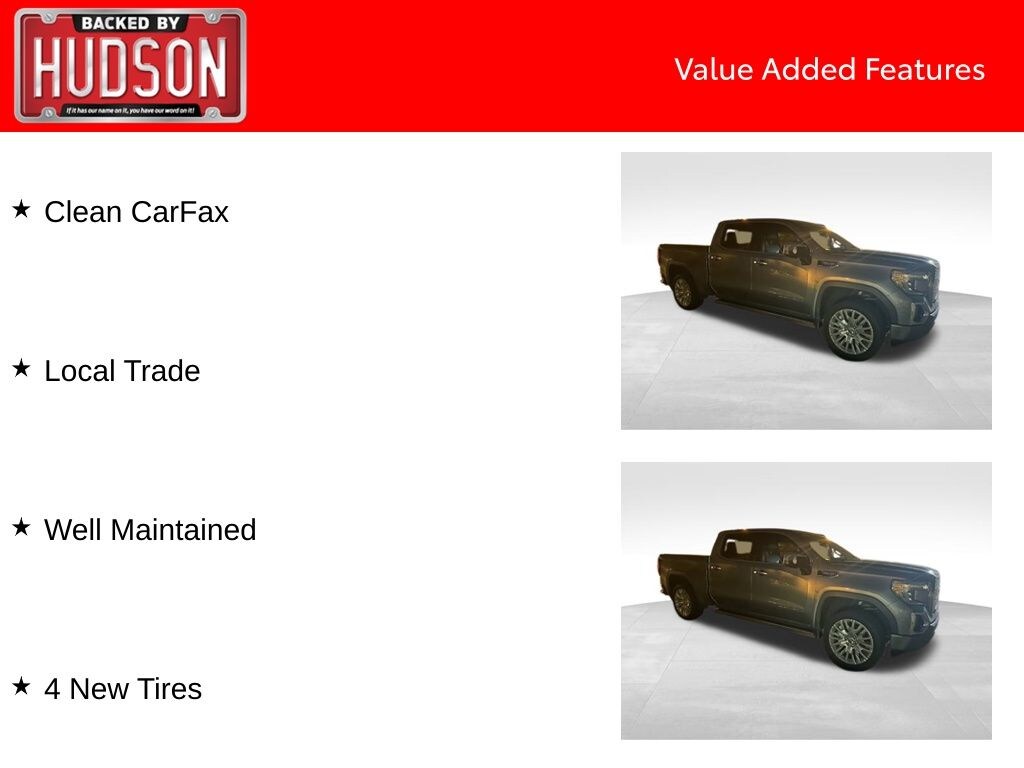 Clean CarFax, Local Trade, Well Maintained, 10-Speed Automatic, 4WD, Dark Walnut/Dark Ash Gray w/Forge Perforated Leather-Appointed Seat Trim, 10-Way Power Driver Seat Adjuster w/Lumbar, 10-Way Power Passenger Seat Adjuster w/Lumbar, 12-Volt Rear Auxiliary Power Outlet, 120-Volt Bed Mounted Power Outlet, 120-Volt Instrument Panel Power Outlet, 170 Amp Alternator, 2 USB Ports, 2 USB Ports (1st Row), 3.23 Rear Axle Ratio, 4-Wheel Disc Brakes, 7 Speakers, ABS brakes, Adaptive Ride Control Suspension, Adaptive suspension, Air Conditioning, Alloy wheels, AM/FM radio: SiriusXM, Apple CarPlay/Android Auto, Auto-dimming door mirrors, Auto-dimming Rear-View mirror, Automatic temperature control, Auxiliary External Transmission Oil Cooler, Brake assist, Bumpers: body-color, Chrome Assist Steps, Chrome Recovery Hooks, Color-Keyed Carpeting Floor Covering, Compass, Deep-Tinted Glass, Delay-off headlights, Denali Ultimate Package, Driver Alert Package I, Driver Alert Package II, Driver door bin, Driver Memory, Driver vanity mirror, Dual front impact airbags, Dual front side impact airbags, Electric Rear-Window Defogger, Electrical Lock Control Steering Column, Electronic Stability Control, Floor Mounted Console, Following Distance Indicator, Forge Perforated Leather-Appointed Seat Trim, Forward Collision Alert, Front anti-roll bar, Front Bucket Seats, Front Center Armrest, Front dual zone A/C, Front fog lights, Front License Plate Kit, Front Pedestrian Braking, Front reading lights, Front wheel independent suspension, Fully automatic headlights, Garage door transmitter, Genuine wood console insert, Genuine wood door panel insert, GMC 4G LTE, GMC Connected Access, GMC MultiPro Power Steps, HD Radio, HD Rear Vision Camera, HD Surround Vision, Heated 2nd Row Outboard Seats, Heated door mirrors, Heated Driver & Front Passenger Seating, Heated front seats, Heated rear seats, Heated steering wheel, Heavy-Duty Rear Locking Differential, High-Capacity Air Filter, Hill Descent Control, Hitch Guidance, Hitch Guidance w/Hitch View, Illuminated entry, In-Vehicle Trailering App, Integrated Trailer Brake Controller, IntelliBeam Automatic High Beam On/Off, Keyless Open & Start, Lane Change Alert w/Side Blind Zone Alert, Lane Keep Assist w/Lane Departure Warning, LED Cargo Area Lighting, Low Speed Forward Automatic Braking, Low tire pressure warning, Manual Tilt-Wheel & Telescoping Steering Column, Memory seat, Multi-Color 15" Diagonal Head-Up Display, Navigation System, Occupant sensing airbag, OnStar & GMC Connected Services Capable, Outside temperature display, Overhead airbag, Overhead console, Panic alarm, Passenger door bin, Passenger vanity mirror, Perimeter Lighting, Power Door Locks, Power door mirrors, Power driver seat, Power Sunroof, Power windows, Preferred Equipment Group 5SA, Premium audio system: GMC Infotainment System, Premium Bose 7-Speaker Sound System, Radio data system, Radio: Premium GMC Infotainment Sys w/Navigation, Rear Camera Mirror, Rear Cross Traffic Alert, Rear Dual USB Charging-Only Ports, Rear reading lights, Rear seat center armrest, Rear step bumper, Rear Wheelhouse Liners, Rear window defroster, Remote keyless entry, Remote Vehicle Starter System, Safety Alert Seat, Security system, Signature Denali Grille, SiriusXM Radio, Speed control, Speed-sensing steering, Split folding rear seat, Spray-On Pickup Bed Liner w/Denali Logo, Steering Wheel Audio Controls, Steering wheel mounted audio controls, Technology Package, Telescoping steering wheel, Theft Deterrent System (Unauthorized Entry), Tilt steering wheel, Traction control, Trailer Tire Pressure Monitor System, Trailering Package, Trip computer, Ultrasonic Front & Rear Park Assist, Universal Home Remote, Variably intermittent wipers, Ven