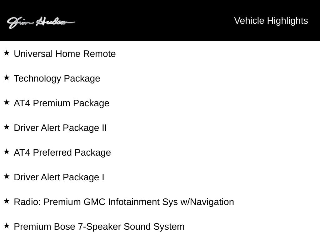 2020 GMC Sierra 1500 AT4 10-Speed Automatic, 4WD, Jet Black w/Kalahari Accents w/Perforated Leather-Appointed Front Seat Trim, 8" Driver Information Center, Adaptive Cruise Control - Camera, AT4 Preferred Package, AT4 Premium Package, Automatic Emergency Braking, Bed View Camera, Driver Alert Package I, Driver Alert Package II, Following Distance Indicator, Forward Collision Alert, Front Pedestrian Braking, HD Surround Vision w/2 Trailer View Camera Provisions, High Gloss Black Mirror Caps, IntelliBeam Automatic High Beam On/Off, Lane Change Alert w/Side Blind Zone Alert, Lane Keep Assist w/Lane Departure Warning, Multicolor 15" Diagonal Head-Up Display, Perimeter Lighting, Power Sliding Rear Window w/Rear Defogger, Power Sunroof, Premium Bose 7-Speaker Sound System, Radio: Premium GMC Infotainment Sys w/Navigation, Rear Camera Mirror, Rear Cross Traffic Alert, Safety Alert Seat, Technology Package, Ultrasonic Front & Rear Park Assist, Universal Home Remote, Wheels: 20" x 9" Machined Aluminum, Wireless Charging.