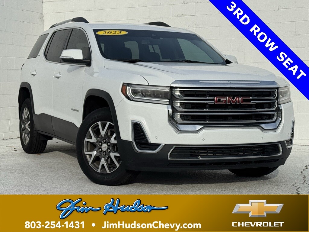 Jim Hudson Chevrolet is proud to present you with another True Market Priced Pre-Owned Vehicle. This 2023 GMC Acadia SLE is loaded with the following Factory Options:Driver Convenience Package (120-Volt Power Outlet, 8-Way Power Driver Seat Adjuster, Brushed Aluminum Roof Rails, Hands Free Power Programmable Liftgate, Heated Driver & Front Passenger Seats, Power Driver Lumbar Control Seat Adjuster, and Remote Start), Preferred Equipment Group 3SA, FWD, Jet Black Cloth, 3.47 Final Drive Axle Ratio, 3rd row seats: split-bench, 4-Way Manual Driver Seat Adjuster, 4-Way Manual Passenger Seat Adjuster, 4-Wheel Disc Brakes, 6 Speakers, 6-Passenger (2-2-2 Seating Configuration), 6-Speaker Audio System Feature, ABS brakes, Air Conditioning, Alloy wheels, AM/FM radio: SiriusXM, Apple CarPlay/Android Auto, Auto High-beam Headlights, Automatic temperature control, Brake assist, Bumpers: body-color, Compass, Delay-off headlights, Driver door bin, Driver vanity mirror, Dual front impact airbags, Dual front side impact airbags, Electronic Stability Control, Emergency communication system: OnStar and GMC connected services capable, Four wheel independent suspension, Front anti-roll bar, Front Bucket Seats, Front Center Armrest, Front dual zone A/C, Front reading lights, Fully automatic headlights, Heated door mirrors, Illuminated entry, Knee airbag, Low tire pressure warning, Occupant sensing airbag, Outside temperature display, Overhead airbag, Overhead console, Panic alarm, Passenger door bin, Passenger vanity mirror, Power door mirrors, Power steering, Power windows, Premium Cloth Seat Trim, Radio data system, Radio: AM/FM w/8" Diagonal Multi-Touch Display, Rear air conditioning, Rear anti-roll bar, Rear reading lights, Rear window defroster, Rear window wiper, Remote keyless entry, Security system, SiriusXM Radio, Speed control, Speed-sensing steering, Spoiler, Steering wheel mounted audio controls, Tachometer, Telescoping steering wheel, Tilt steering wheel, Traction control, Trip computer, Turn signal indicator mirrors, Variably intermittent wipers, Voltmeter, Wheels: 18" Machined Aluminum w/Dark Accents, and Wireless Apple CarPlay/Wireless Android Auto Visit www.FuelEconomy.gov to get current fuel economy ratings for this vehicle.