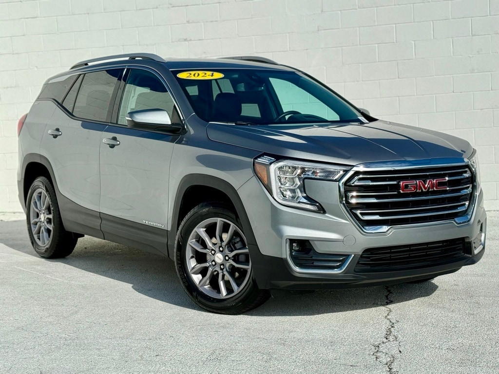 Jim Hudson Chevrolet is proud to present you with another True Market Priced Pre-Owned Vehicle. This 2024 GMC Terrain SLT is loaded with the following Factory Options:Preferred Equipment Group 4SA, AWD, 2 USB Data Ports, 2 USB Data Ports w/SD Card Reader, 3.47 Final Drive Axle Ratio, 4-Wheel Disc Brakes, 6 Speakers, 6-Speaker Audio System Feature, 6-Way Power Front Passenger Seat, 8-Way Power Driver Seat Adjuster, ABS brakes, Air Conditioning, Alloy wheels, AM/FM radio: SiriusXM, Auto High-beam Headlights, Auto-dimming Rear-View mirror, Automatic temperature control, Bluetooth® For Phone, Brake assist, Bumpers: body-color, Compass, Delay-off headlights, Driver & Front Passenger Heated Seats, Driver door bin, Driver vanity mirror, Dual front impact airbags, Dual front side impact airbags, Electronic Stability Control, Emergency communication system: OnStar and GMC connected services capable, Four wheel independent suspension, Front anti-roll bar, Front Bucket Seats, Front Center Armrest, Front dual zone A/C, Front fog lights, Front Passenger 2-Way Power Lumbar, Front reading lights, Fully automatic headlights, Garage door transmitter, Heated door mirrors, Heated front seats, Heated steering wheel, Illuminated entry, Low tire pressure warning, Memory seat, Occupant sensing airbag, Outside temperature display, Overhead airbag, Overhead console, Panic alarm, Passenger door bin, Passenger vanity mirror, Perforated Leather-Appointed Seat Trim, Power door mirrors, Power Driver Lumbar Control, Power driver seat, Power Liftgate, Power passenger seat, Power steering, Power windows, Radio data system, Radio: GMC Infotainment Audio System w/8" Display, Rear anti-roll bar, Rear seat center armrest, Rear window defroster, Rear window wiper, Remote keyless entry, Roof rack: rails only, Security system, SiriusXM, Speed control, Speed-sensing steering, Split folding rear seat, Spoiler, Steering wheel mounted audio controls, Tachometer, Telescoping steering wheel, Tilt steering wheel, Traction control, Trip computer, Turn signal indicator mirrors, Variably intermittent wipers, Wheels: 18" x 7" Silver Painted Aluminum, and Wireless Apple CarPlay/Wireless Android Auto Visit www.FuelEconomy.gov to get current fuel economy ratings for this vehicle.