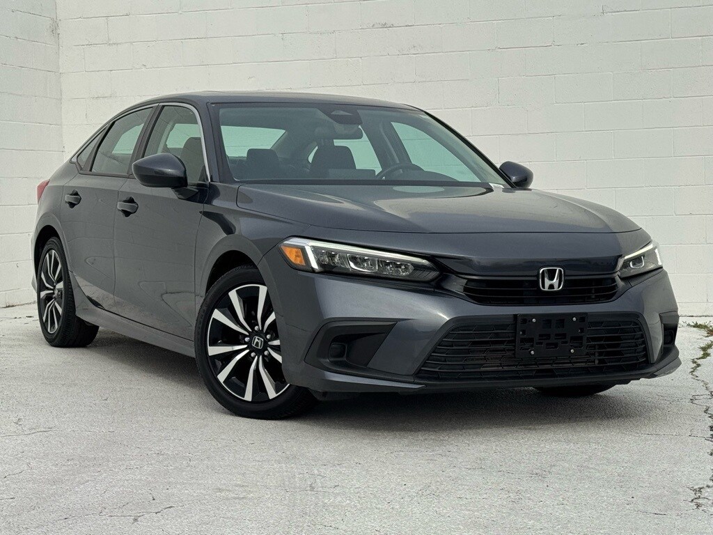 Jim Hudson Chevrolet is proud to present you with another True Market Priced Pre-Owned Vehicle. This 2023 Honda Civic EX is loaded with the following Factory Options:Black w/Fabric Seating Surfaces, Adaptive Cruise Control: Adaptive Cruise Control (ACC) with Low-Speed Follow, Apple CarPlay/Android Auto, Heated Front Bucket Seats, Power moonroof, 4-Wheel Disc Brakes, 8 Speakers, ABS brakes, Air Conditioning, Alloy wheels, AM/FM radio, Auto High-beam Headlights, Automatic temperature control, Brake assist, Bumpers: body-color, Cloth Seat Trim, Delay-off headlights, Driver door bin, Driver vanity mirror, Dual front impact airbags, Dual front side impact airbags, Electronic Stability Control, Emergency communication system: HondaLink, Exterior Parking Camera Rear, Four wheel independent suspension, Front anti-roll bar, Front Bucket Seats, Front Center Armrest, Front dual zone A/C, Front reading lights, Fully automatic headlights, Heated door mirrors, Heated front seats, Illuminated entry, Knee airbag, Leather Shift Knob, Leather steering wheel, Low tire pressure warning, Occupant sensing airbag, Outside temperature display, Overhead airbag, Overhead console, Panic alarm, Passenger door bin, Passenger vanity mirror, Power door mirrors, Power steering, Power windows, Radio data system, Radio: 180-Watt Audio System w/8 Speakers, Rear anti-roll bar, Rear seat center armrest, Rear side impact airbag, Rear window defroster, Remote keyless entry, Security system, Speed control, Speed-sensing steering, Split folding rear seat, Steering wheel mounted audio controls, Tachometer, Telescoping steering wheel, Tilt steering wheel, Traction control, Trip computer, Variably intermittent wipers, and Wheels: 17" Alloy w/Gloss Black Inserts Visit www.FuelEconomy.gov to get current fuel economy ratings for this vehicle.