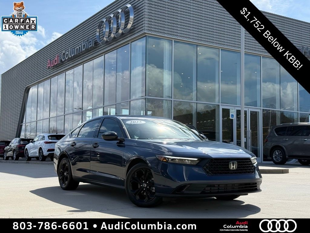 2025 Honda Accord SE Clean CarFax, Local Trade, One Owner, Well Maintained, 4-Wheel Disc Brakes, ABS brakes, Alloy wheels, Apple CarPlay/Android Auto, Auto High-beam Headlights, Automatic temperature control, Blind Spot Information (BSI) System warning, Dual front impact airbags, Dual front side impact airbags, Emergency communication system: HondaLink Assist, Exterior Parking Camera Rear, Front anti-roll bar, Fully automatic headlights, Heated Front Bucket Seats, Knee airbag, Lane departure: Lane Keeping Assist System (LKAS) active, Low tire pressure warning, Occupant sensing airbag, Overhead airbag, Power moonroof, Rear anti-roll bar, Rear side impact airbag, Speed-sensing steering, Speed-Sensitive Wipers, Steering wheel mounted audio controls, Wheels: 17" x 7.5J Berlina Black.