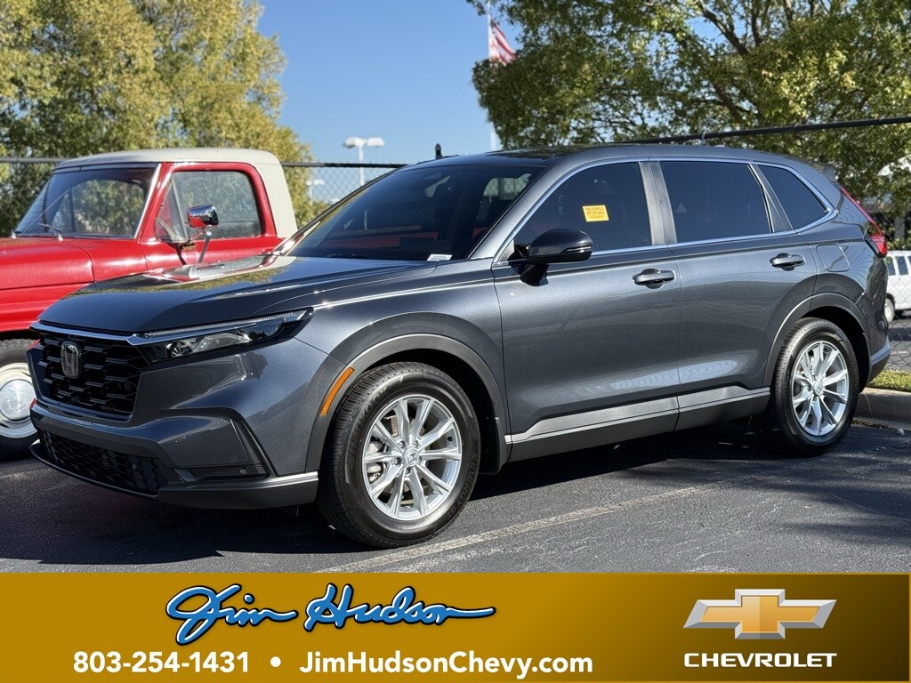 Jim Hudson Chevrolet is proud to present you with another True Market Priced Pre-Owned Vehicle. This 2025 Honda CR-V EX-L is loaded with the following Factory Options:4-Wheel Disc Brakes, 8 Speakers, ABS brakes, Adaptive Cruise Control: Adaptive Cruise Control (ACC) with Low-Speed Follow, Air Conditioning, Alloy wheels, AM/FM radio: SiriusXM, Auto High-beam Headlights, Auto-dimming Rear-View mirror, Automatic temperature control, Blind Spot Information (BSI) System warning, Brake assist, Bumpers: body-color, Compass, Delay-off headlights, Driver door bin, Driver vanity mirror, Dual front impact airbags, Dual front side impact airbags, Electronic Stability Control, Exterior Parking Camera Rear, Four wheel independent suspension, Front anti-roll bar, Front Bucket Seats, Front Center Armrest, Front dual zone A/C, Front reading lights, Fully automatic headlights, Heated door mirrors, Heated Front Bucket Seats, Heated front seats, Illuminated entry, Knee airbag, Leather Seat Trim, Leather Shift Knob, Leather steering wheel, Low tire pressure warning, Memory seat, Occupant sensing airbag, Outside temperature display, Overhead airbag, Overhead console, Panic alarm, Passenger door bin, Passenger vanity mirror, Power door mirrors, Power driver seat, Power Liftgate, Power moonroof, Power passenger seat, Power steering, Power windows, Radio data system, Radio: 320-Watt AM/FM/HD/SiriusXM Audio System, Rear anti-roll bar, Rear reading lights, Rear seat center armrest, Rear side impact airbag, Rear window defroster, Rear window wiper, Remote keyless entry, Security system, Speed control, Speed-sensing steering, Speed-Sensitive Wipers, Split folding rear seat, Spoiler, Steering wheel mounted audio controls, Tachometer, Telescoping steering wheel, Tilt steering wheel, Traction control, Trip computer, Turn signal indicator mirrors, Variably intermittent wipers, and Wheels: 18" Sparkle Silver Metallic Visit www.FuelEconomy.gov to get current fuel economy ratings for this vehicle.