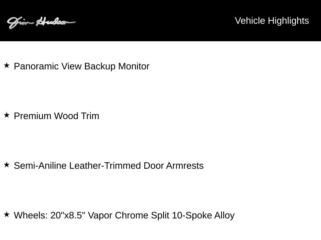- Wheels: 20"x8.5" Vapor Chrome Split 10-Spoke Alloy$1,200