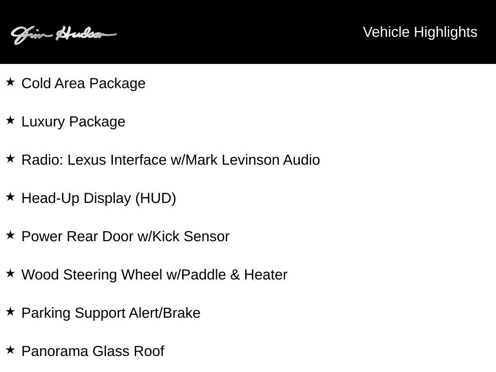 - Radio: Lexus Interface w/Mark Levinson Audio
