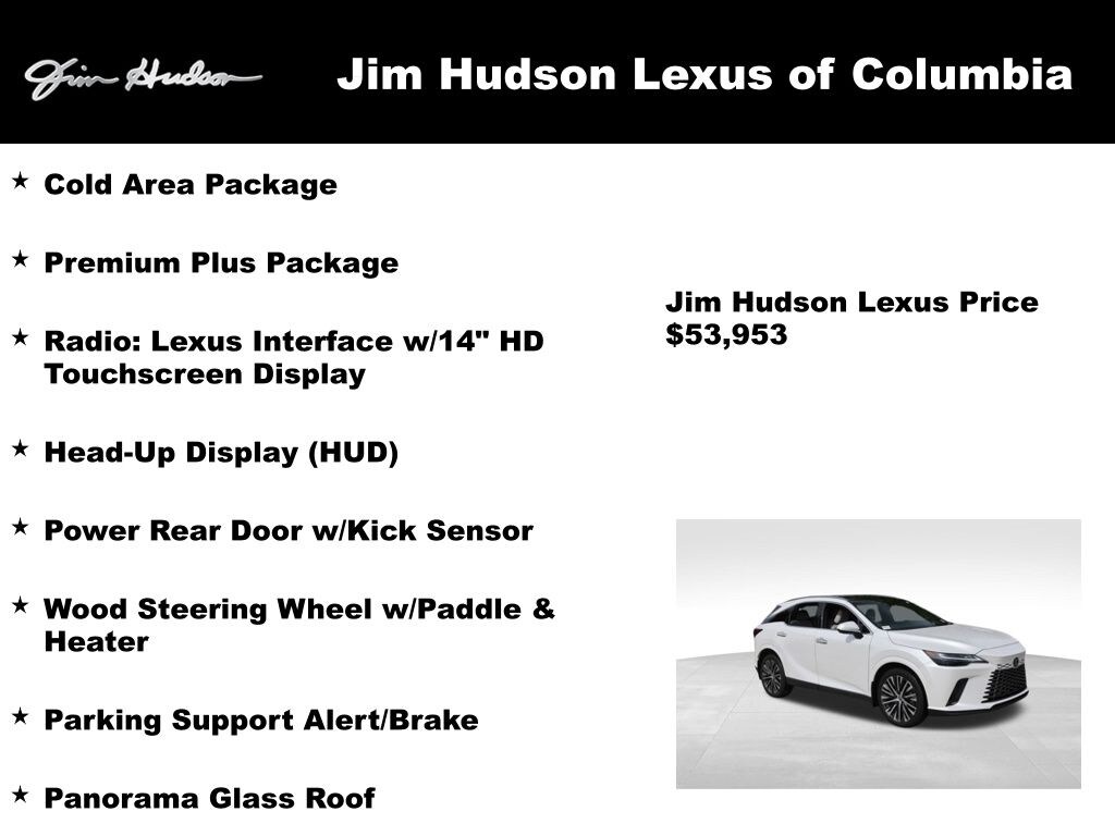 2023 Lexus RX 350 Premium Plus Macadamia w/Ash Bamboo w/Leather Seat Trim, 8-Way Power Driver & Front Passenger Seat Adjusters, Advanced Park, Cold Area Package, Digital Rearview Mirror, Finish Plate Door Inner Garnish, Head-Up Display (HUD), Heated & Ventilated Front Bucket Seats, Multi-Color Illuminated Entry System, Panorama Glass Roof, Panoramic View Monitor w/BSM, Parking Support Alert/Brake, Power Rear Door w/Kick Sensor, Premium Plus Package, Radio: Lexus Interface w/14" HD Touchscreen Display, Wheels: 21" 20-Spoke Alloy, Wireless Apple CarPlay/Wireless Android Auto, Wireless Charger, Wood Steering Wheel w/Paddle & Heater.