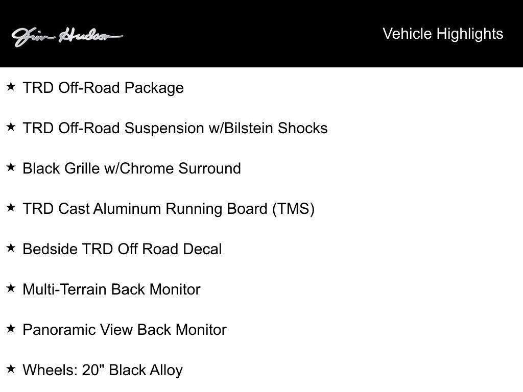 2022 Toyota Tundra 1794 4WD, Saddle Tan w/Leather Seat Trim, Bedside TRD Off Road Decal, Black Grille w/Chrome Surround, Multi-Terrain Back Monitor, Panoramic View Back Monitor, TRD Cast Aluminum Running Board (TMS), TRD Off-Road Package, TRD Off-Road Suspension w/Bilstein Shocks, Wheels: 20" Black Alloy.