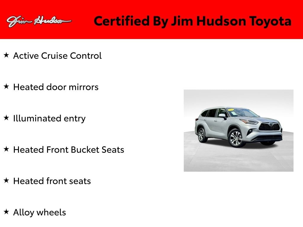 ABS brakes, Active Cruise Control, Alloy wheels, Electronic Stability Control, Front dual zone A/C, Heated door mirrors, Heated Front Bucket Seats, Heated front seats, Illuminated entry, Low tire pressure warning, Power Liftgate, Power moonroof, Remote keyless entry, Traction control.