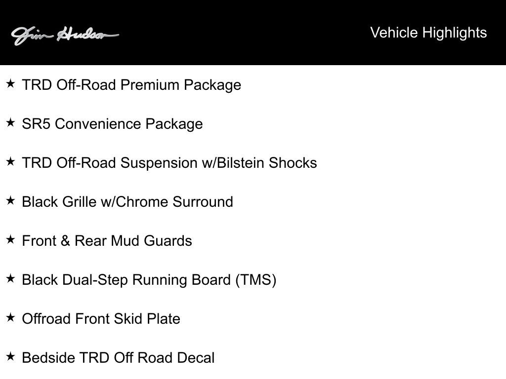- TRD Off-Road Suspension w/Bilstein Shocks