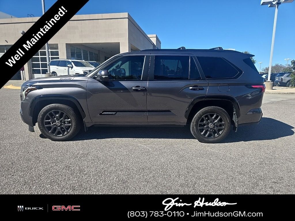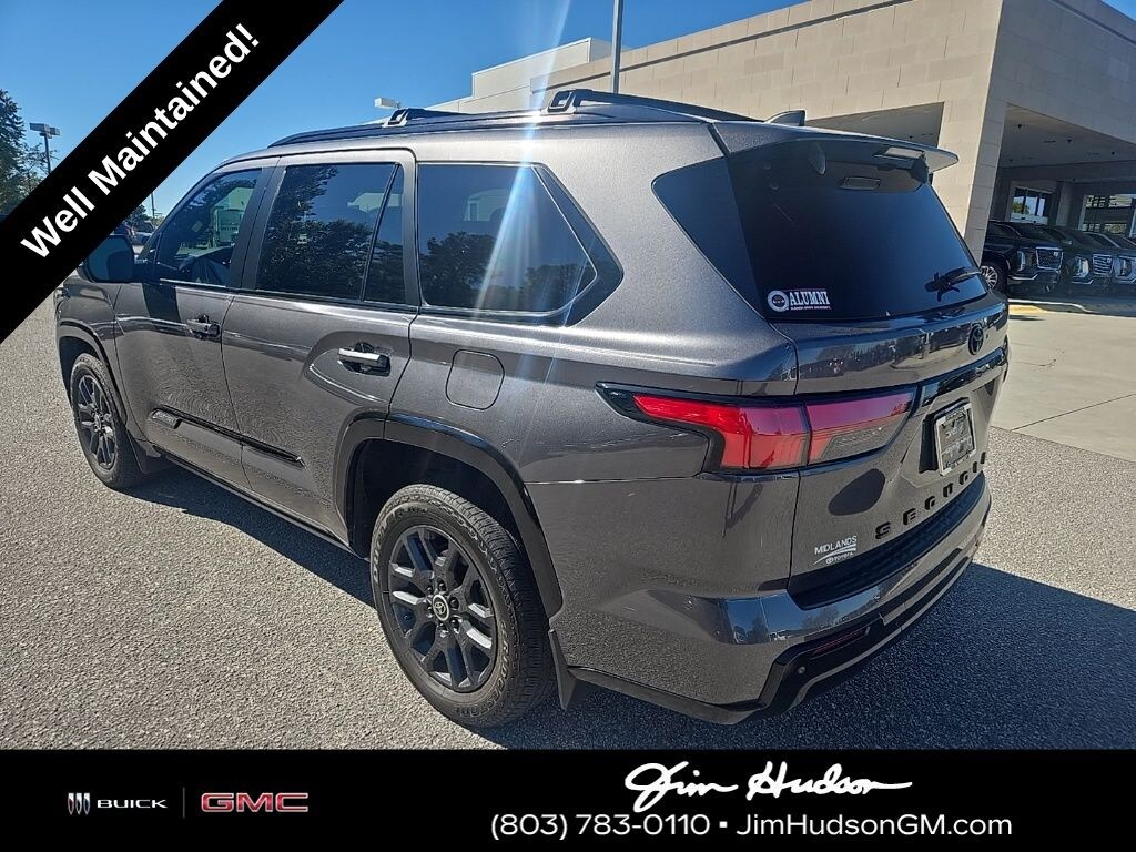 2024 Toyota Sequoia Limited V6 Hybrid, 10-Speed Automatic, 4WD, 3.31 Axle Ratio, 3rd row seats: split-bench, 4-Wheel Disc Brakes, 8 Speakers, ABS brakes, Air Conditioning, Alloy wheels, AM/FM radio: SiriusXM, Anti-whiplash front head restraints, Apple CarPlay/Android Auto, Auto High-beam Headlights, Auto-dimming door mirrors, Auto-dimming Rear-View mirror, Automatic temperature control, Brake assist, Bumpers: body-color, Cast Aluminum Step & Step Cover, Delay-off headlights, Driver door bin, Driver vanity mirror, Dual front impact airbags, Dual front side impact airbags, Electronic Stability Control, Emergency communication system: Safety Connect (10-year trial), Exterior Parking Camera Rear, Front anti-roll bar, Front Bucket Seats, Front Center Armrest w/Storage, Front dual zone A/C, Front fog lights, Front reading lights, Front wheel independent suspension, Fully automatic headlights, Garage door transmitter: HomeLink, Headlight cleaning, Heated & Ventilated Front Seats, Heated door mirrors, Heated front seats, Heated steering wheel, Illuminated entry, JBL 14 Speakers, Knee airbag, Leather Shift Knob, Leather steering wheel, Low tire pressure warning, Memory seat, Navigation system: Drive Connect (1 year trial) includes Cloud Navigation with real time traffic and Google POI, Occupant sensing airbag, Outside temperature display, Overhead airbag, Overhead console, Panic alarm, Passenger door bin, Passenger vanity mirror, Power door mirrors, Power driver seat, Power Liftgate, Power moonroof, Power passenger seat, Power steering, Power windows, Radio: Toyota Multimedia w/14" Display, Rear air conditioning, Rear reading lights, Rear seat center armrest, Rear window defroster, Rear window wiper, Reclining 3rd row seat, Remote keyless entry, Security system, SofTex Seat Trim, Speed control, Speed-sensing steering, Split folding rear seat, Spoiler, Steering wheel mounted audio controls, Tachometer, Telescoping steering wheel, Tilt steering wheel, Tow Technology Package, Traction control, Trip computer, Turn signal indicator mirrors, Variably intermittent wipers, Ventilated front seats, Voltmeter, Wheels: 20" Machined-Finish Alloy, Wireless Smartphone Charger, V6 Hybrid, 10-Speed Automatic, 4WD.