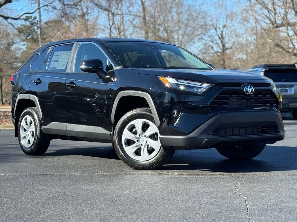 Black 2025 Toyota RAV4 LE FWD 8-Speed Automatic 2.5L 4-Cylinder DOHC Dual VVT-i 20 Cloth, 17" Steel Wheels, 4-Wheel Disc Brakes, 6 Speakers, ABS brakes, Air Conditioning, AM/FM radio: SiriusXM, Auto High-beam Headlights, Blind Spot Monitor (BSM) w/Lane Change Assist, Brake assist, Bumpers: body-color, Driver door bin, Driver vanity mirror, Dual front impact airbags, Dual front side impact airbags, Electronic Stability Control, Emergency communication system: Safety Connect (10-year trial), Exterior Parking Camera Rear, Fabric Seat Trim, Four wheel independent suspension, Front anti-roll bar, Front Bucket Seats, Front Center Armrest, Front reading lights, Illuminated entry, Knee airbag, Low tire pressure warning, Mudguards (TMS), Occupant sensing airbag, Outside temperature display, Overhead airbag, Overhead console, Panic alarm, Passenger door bin, Passenger vanity mirror, Power door mirrors, Power steering, Power windows, Radio data system, Radio: AM/FM/XM Audio System, Rear anti-roll bar, Rear Cargo Area Cover, Rear seat center armrest, Rear window defroster, Rear window wiper, Remote keyless entry, Speed control, Speed-sensing steering, Split folding rear seat, Spoiler, Steering wheel mounted audio controls, Tachometer, Telescoping steering wheel, Tilt steering wheel, Traction control, Trip computer, 20 Cloth.